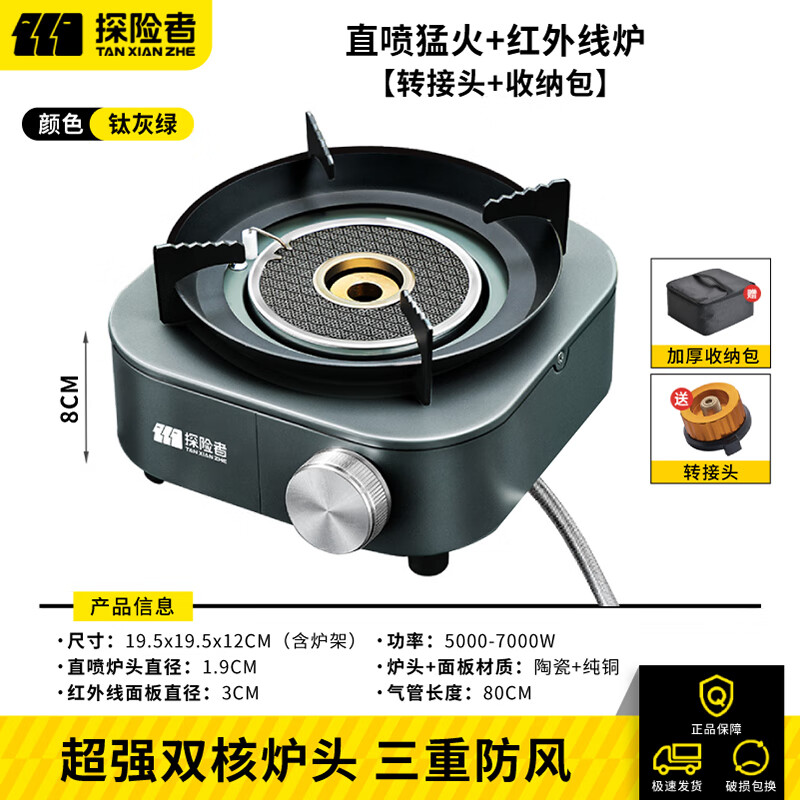 探险者户外卡式炉防风露营炉具猛火红外线卡磁炉防爆分体式液化燃气炉 【钛灰绿】红外线+直喷猛火炉
