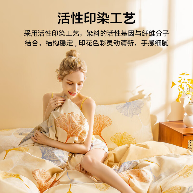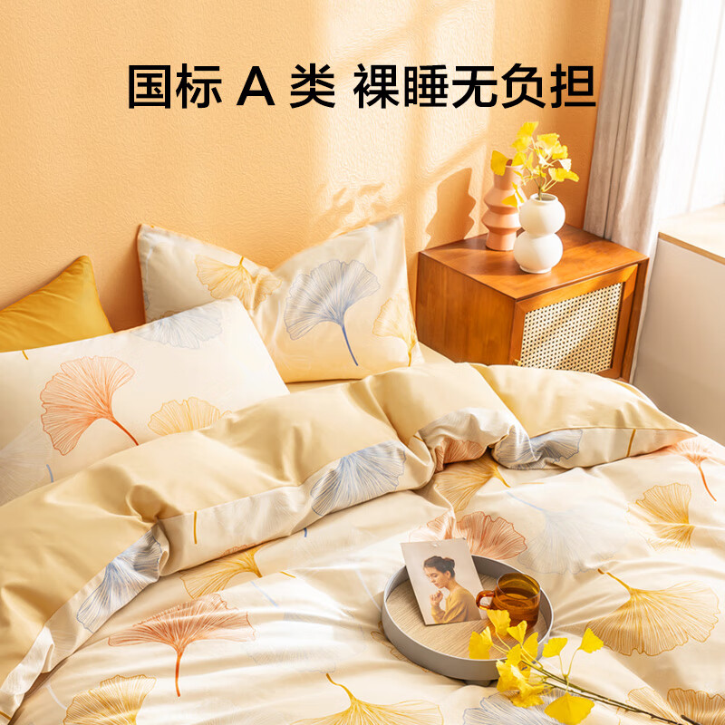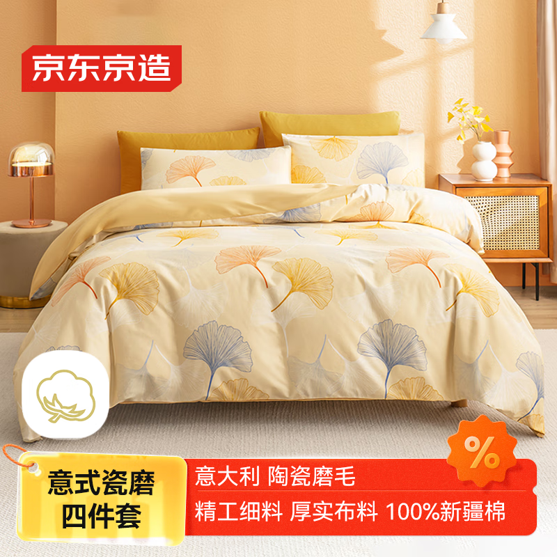 京东京造意式瓷磨四件套 A类抗菌100%纯棉磨毛 厚实保暖床上四件套床单款1.5米床 染秋沁暖