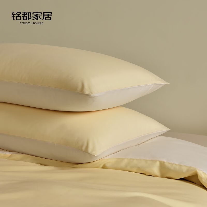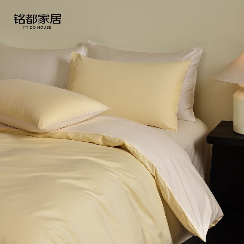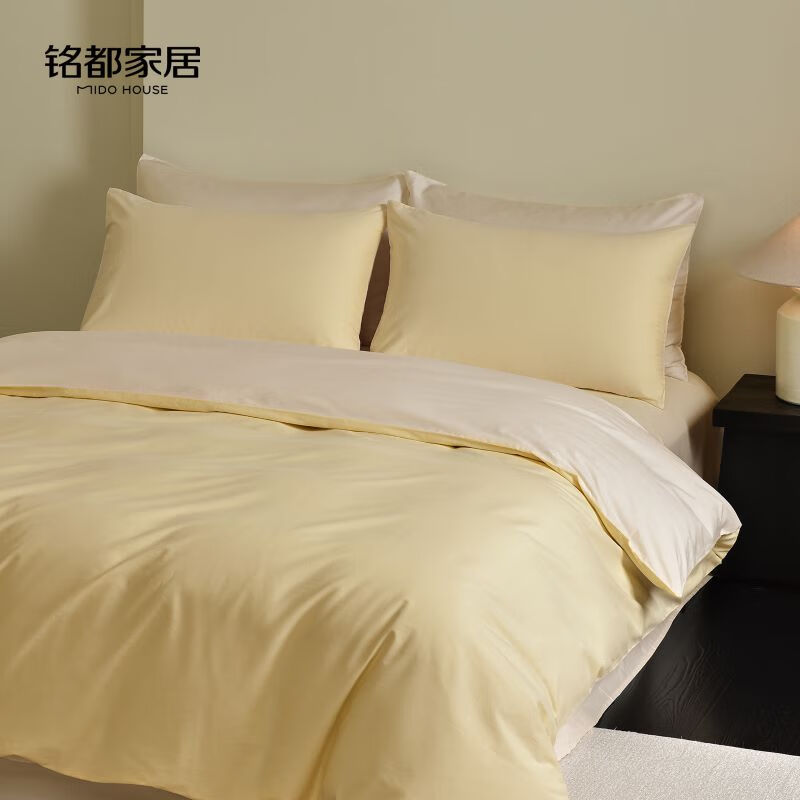 MIDO HOUSE铭都床上四件套60支纯棉四季磨毛床单被套嫩鹅黄1.8m床单款