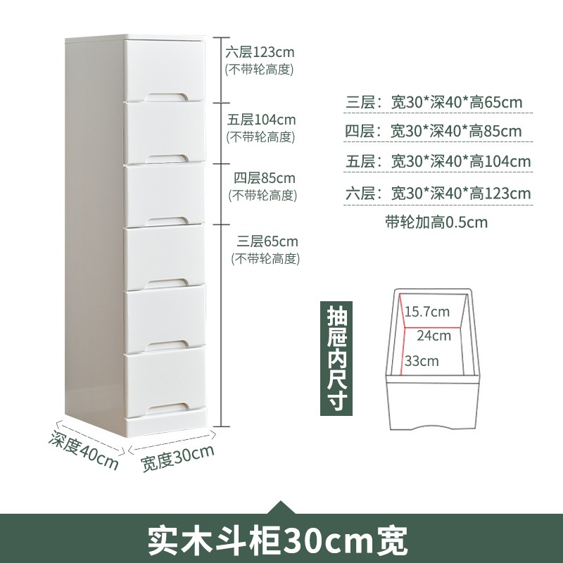 鹊栖 斗柜实木夹缝柜抽屉式收纳柜边柜缝隙斗柜超窄小床头柜 白色-30宽 4个抽