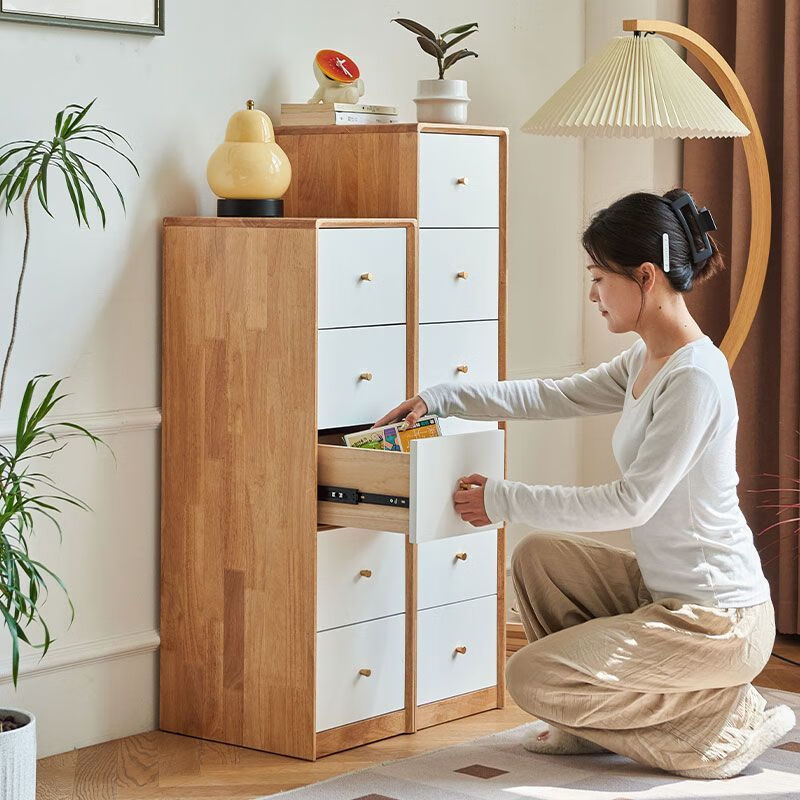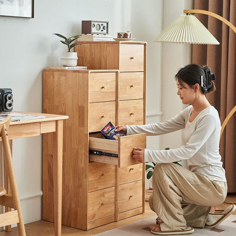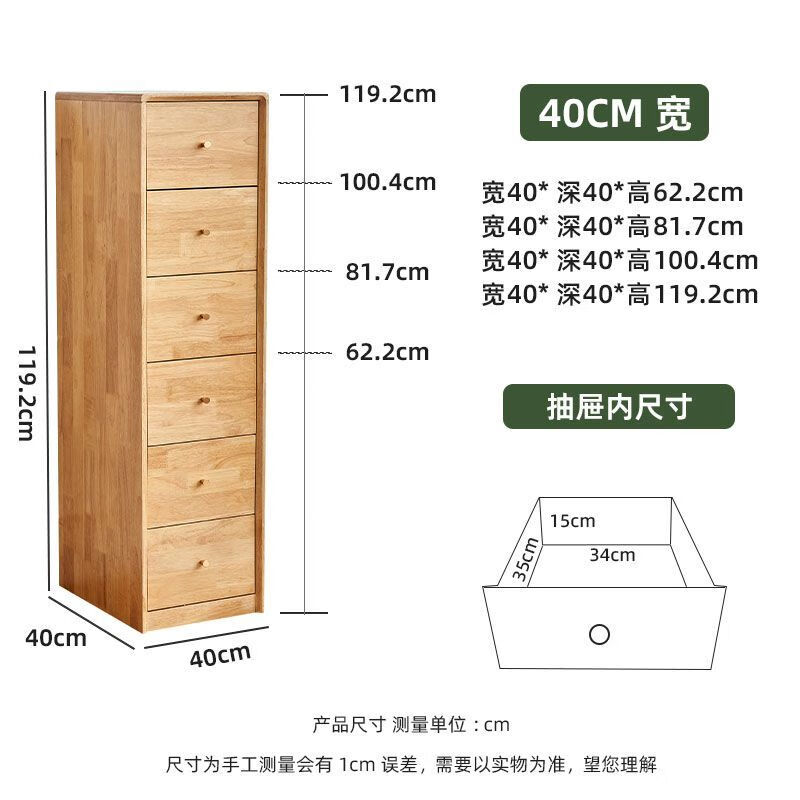 维佩洛实木抽屉柜实木斗柜多层抽屉式夹缝抽屉式收纳柜客厅缝隙极窄床头 40cm宽 原木色【进口橡胶木】 6层