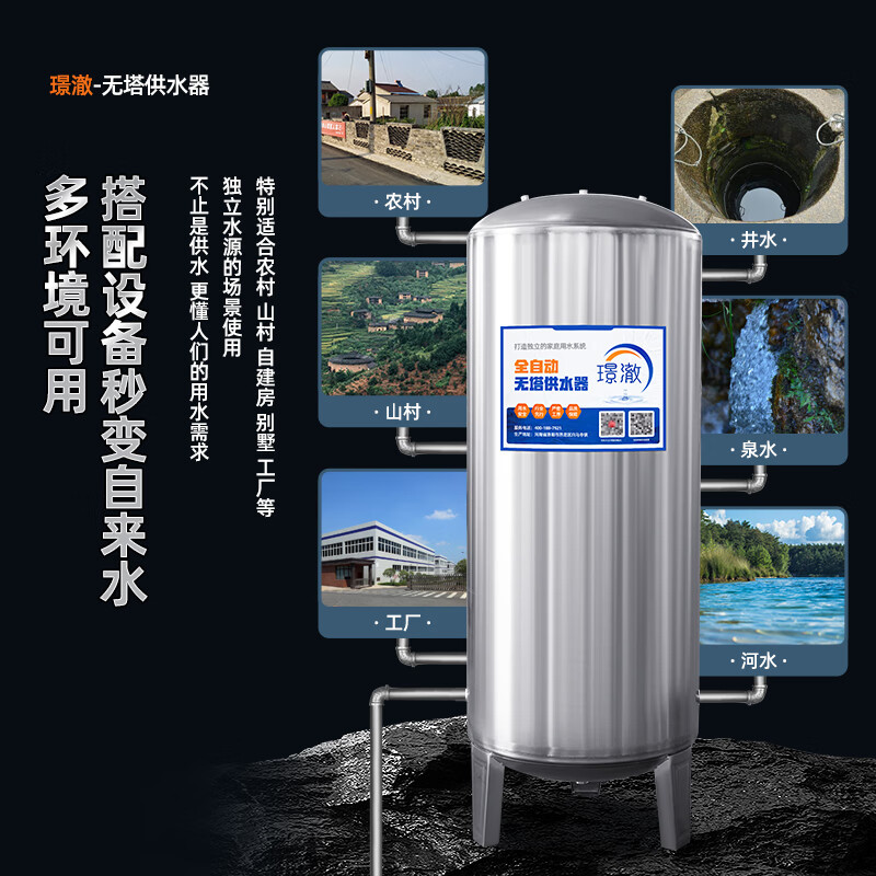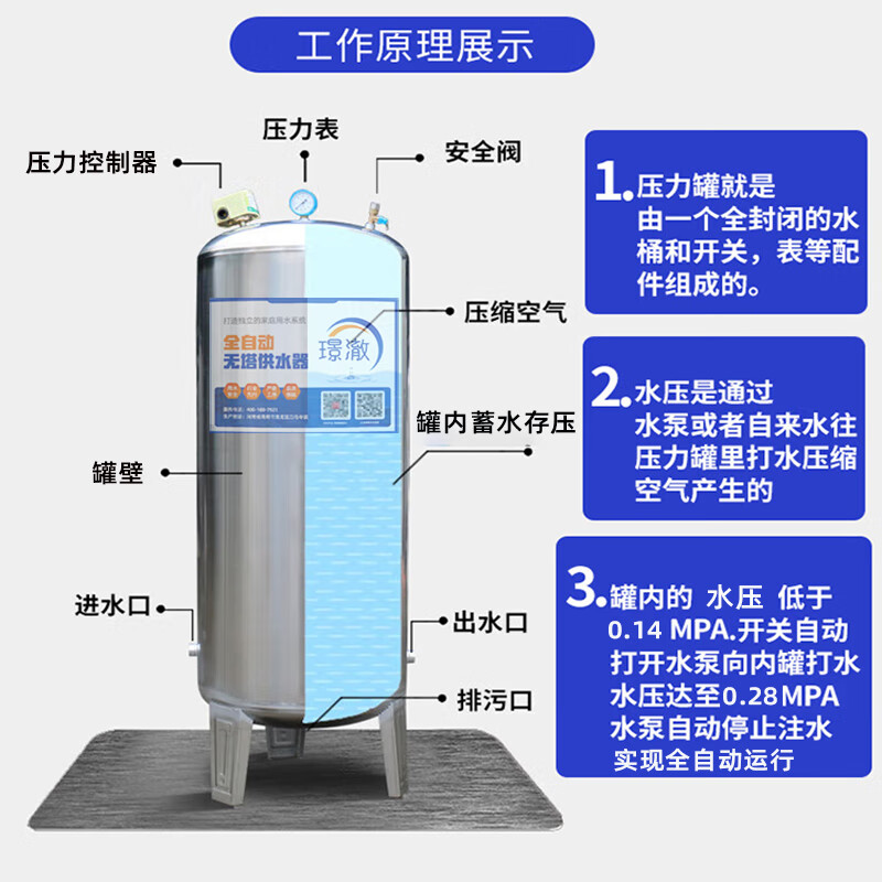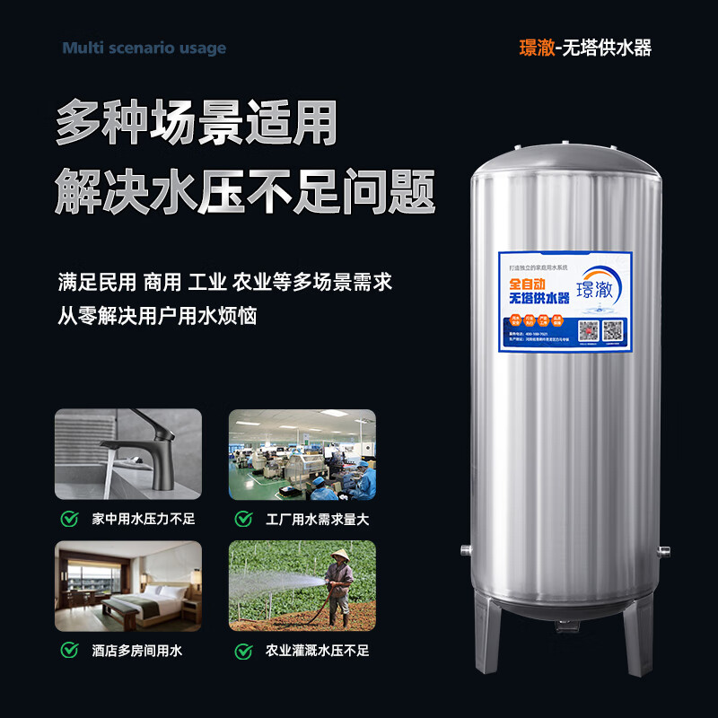 璟澈304不锈钢压力罐储水罐家用全自动无塔供水器自来水增压罐蓄水罐 1.3mm厚-100升【适合一口人用】