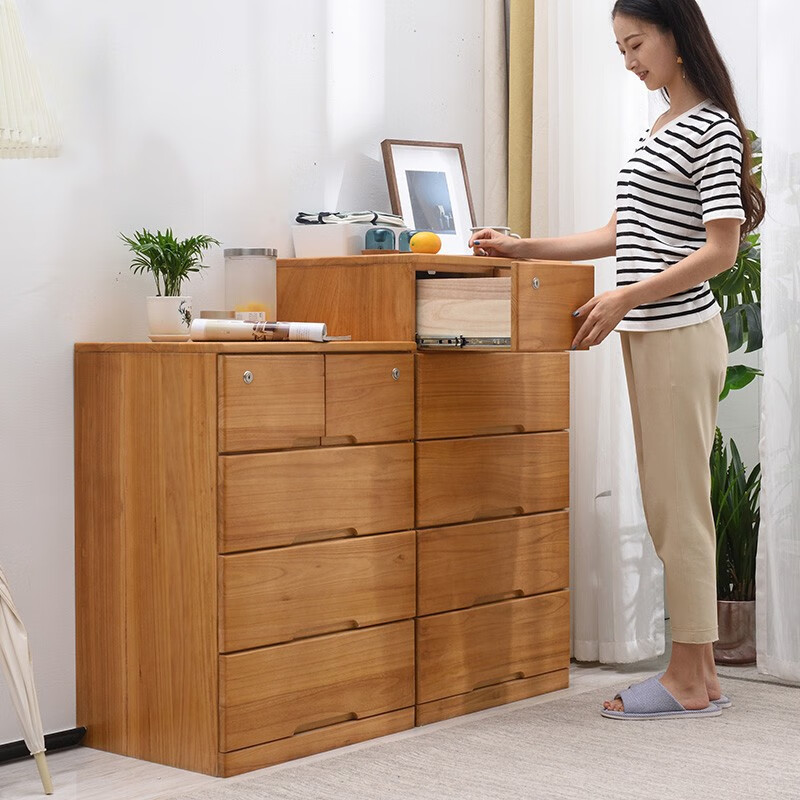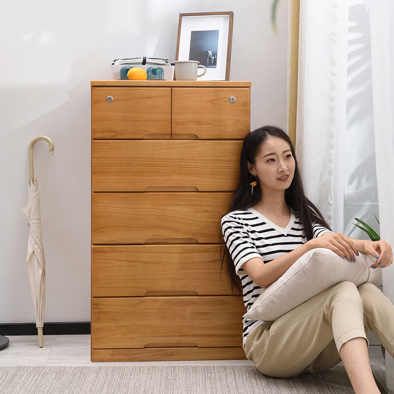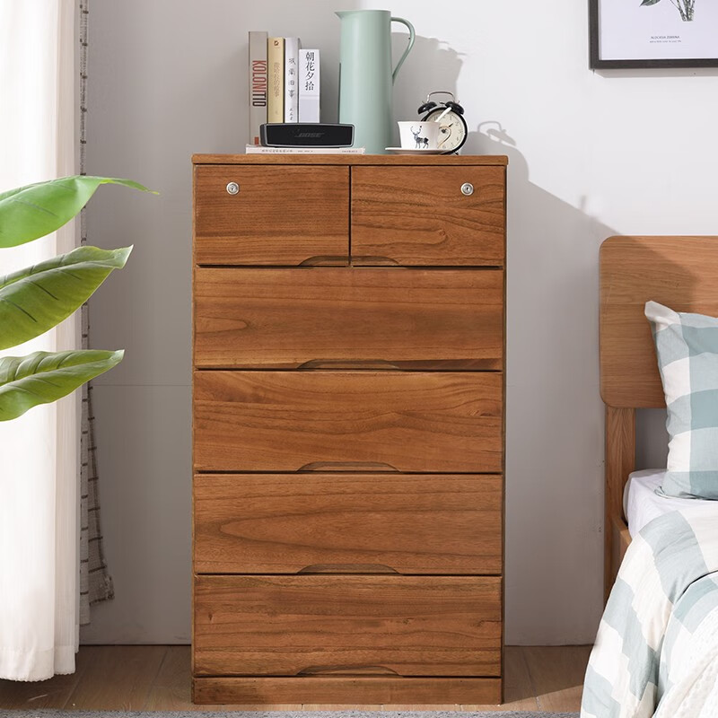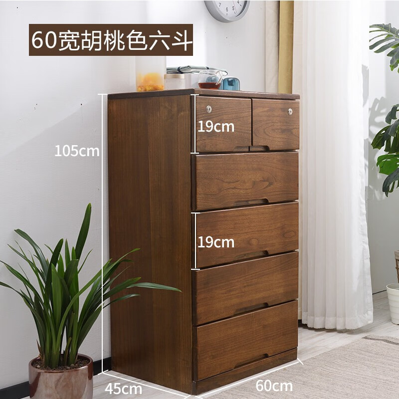 亦照斗柜实木家用抽屉式收纳柜客厅衣服储物柜卧室床头柜夹缝置物柜 60宽全实木胡桃色六斗柜