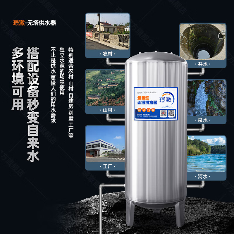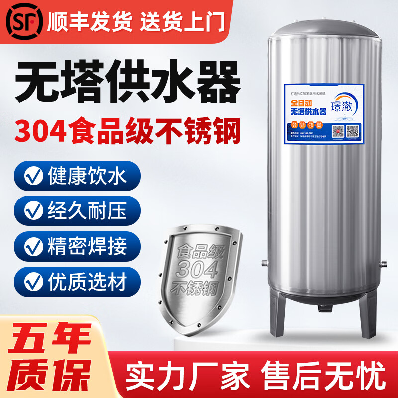 璟澈304不锈钢压力罐储水罐家用全自动无塔供水器自来水增压罐蓄水罐 500升-直径60cm-高165cm 【304不锈钢】