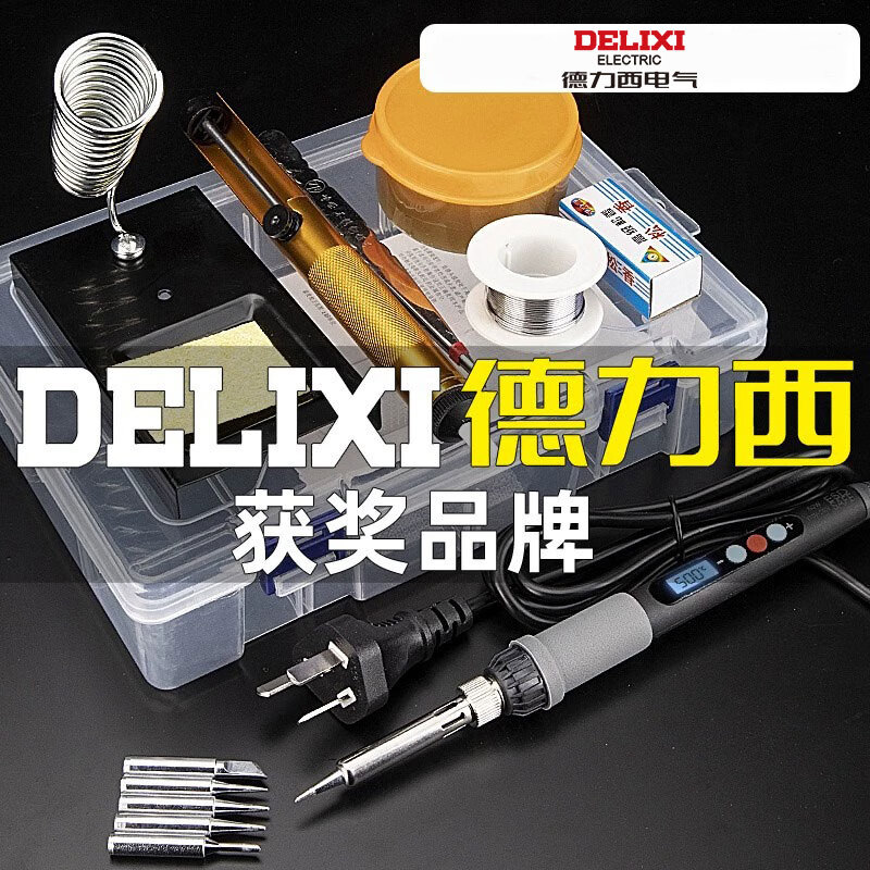 德力西电烙铁恒温家用套装可调温电焊笔焊锡枪大功率维修焊接神器电洛铁 60w调温-智能速热恒温-7件套