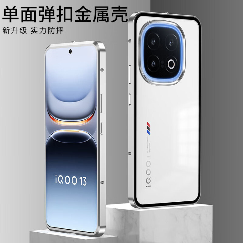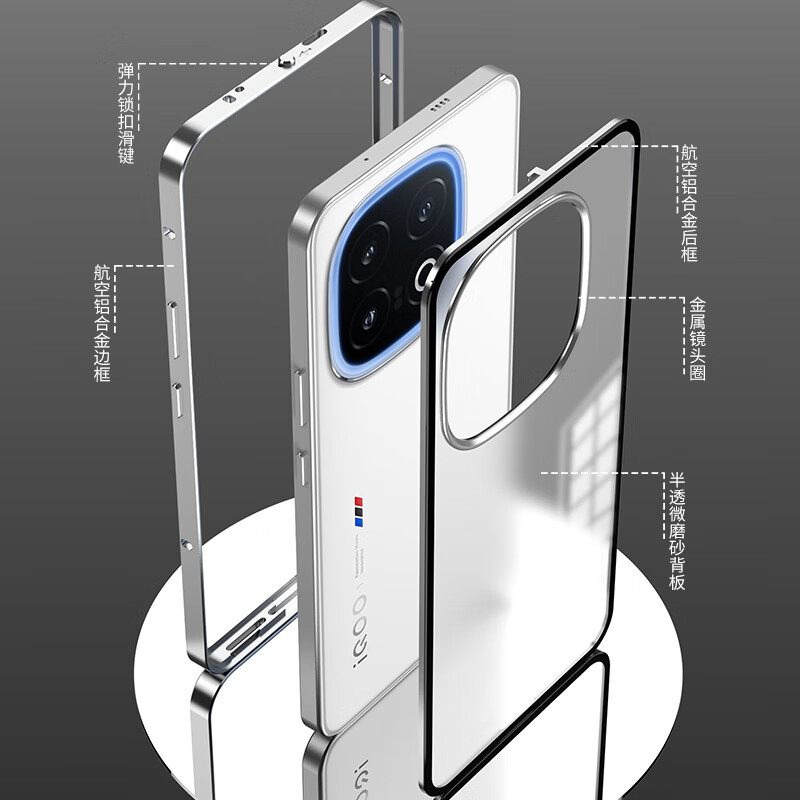 彩画家适用vivo iqoo13手机壳防摔镜头全包iQOO13Pro保护套新款单面磨砂玻璃金属弹扣半透明男女款抗指纹 iQOO13【气质银】金属弹扣