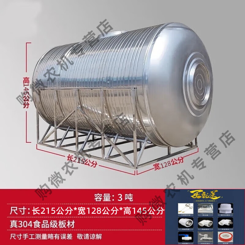 猎瑞304不锈钢水箱卧式储水罐水塔家用平放加厚太阳能楼顶厨房蓄水桶 加厚3.0吨