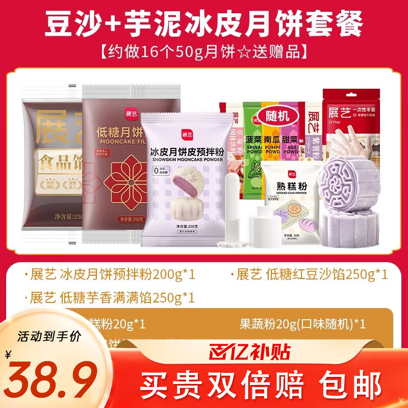 展艺冰皮月饼预拌粉月饼材料全套冰皮专用粉免蒸烤商用团建烘焙中秋 [豆沙+芋泥套餐]约做16个共700g