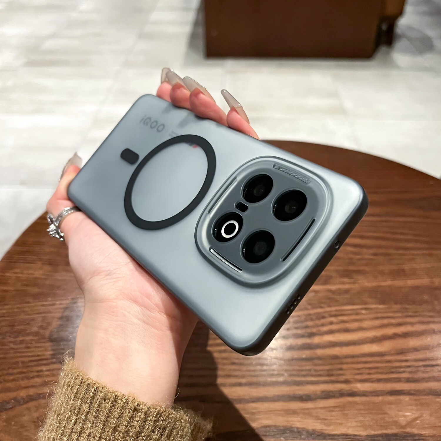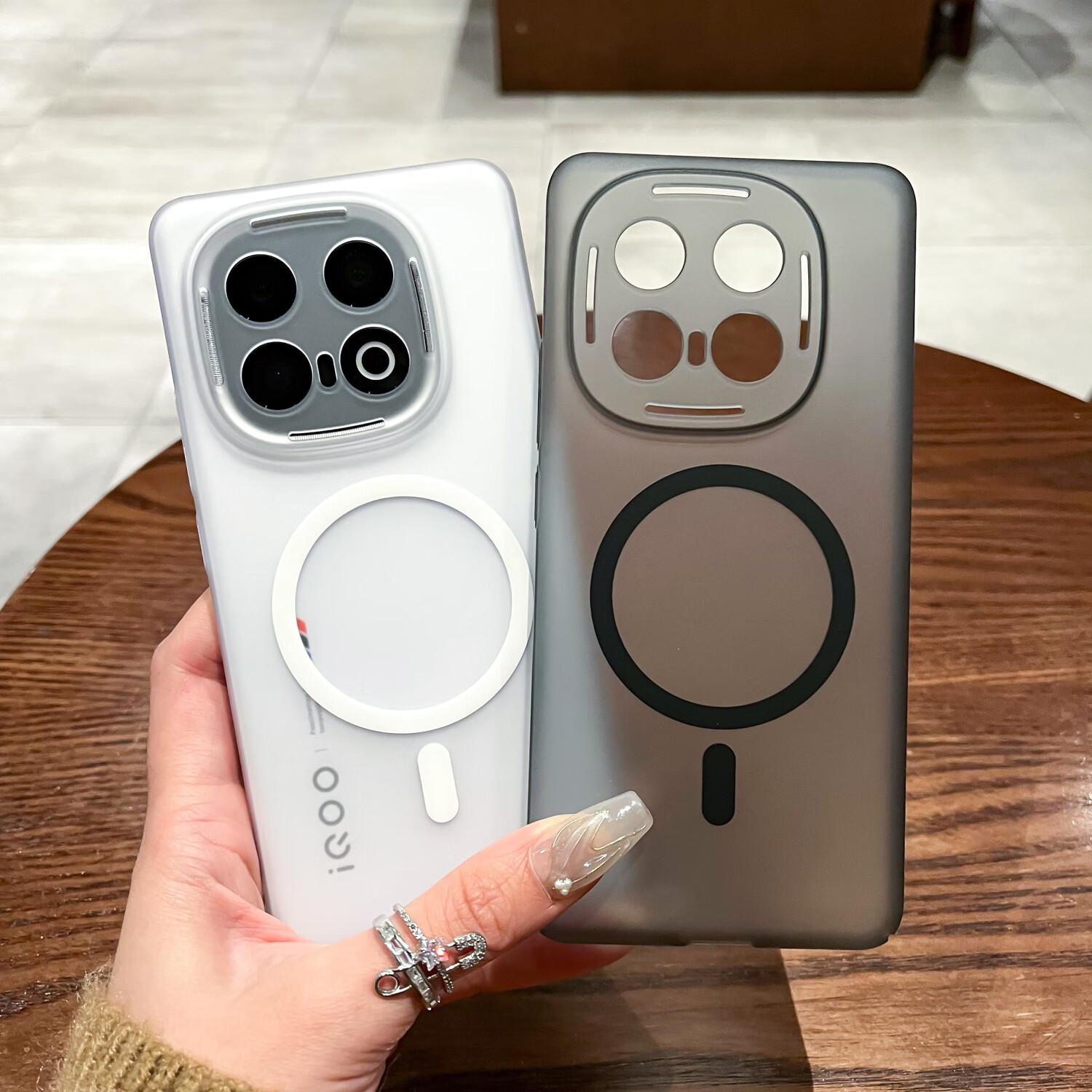 韵宁 适用于iQOO13手机壳新款磁吸冰雾磨砂iqoo12pro超薄全包iQOO12硬壳简约透明高级感男女保护壳 【透砂黑】冰雾磨砂-精孔镜头 iQOO 13