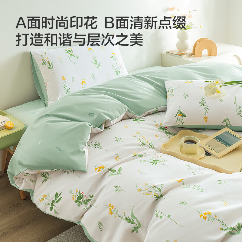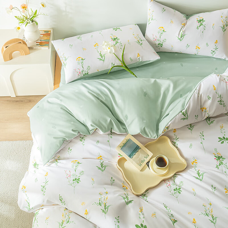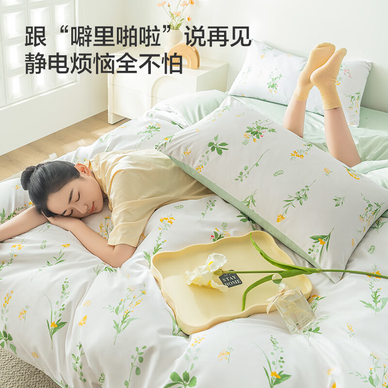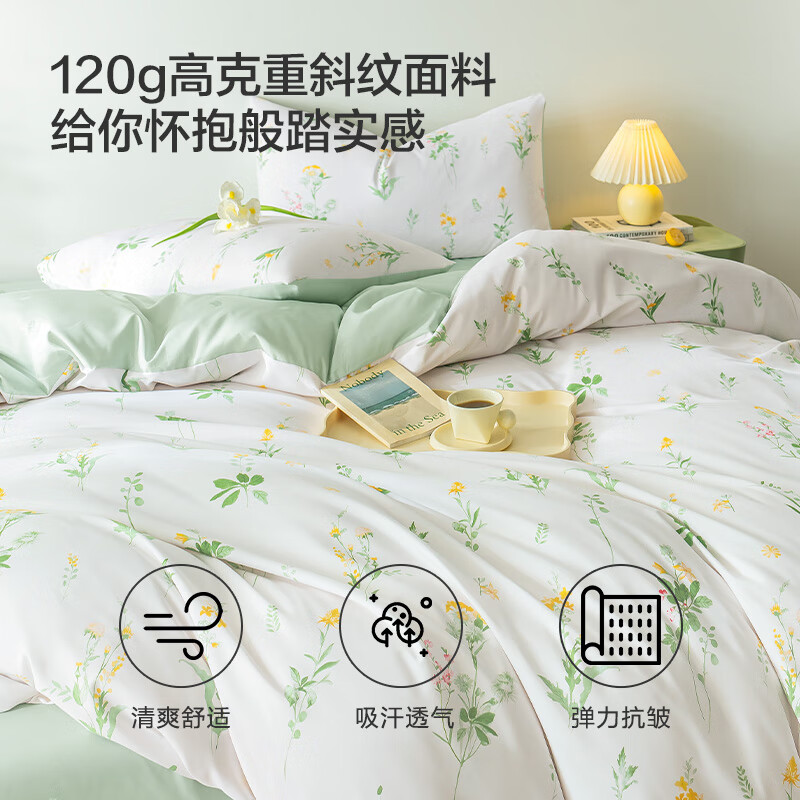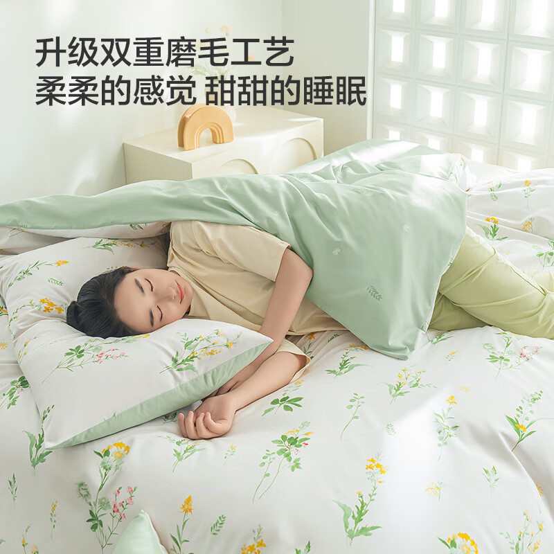 京东京造悦柔四件套 120g加厚耐用磨毛A类床单被套床上四件套 1.8米香雪球