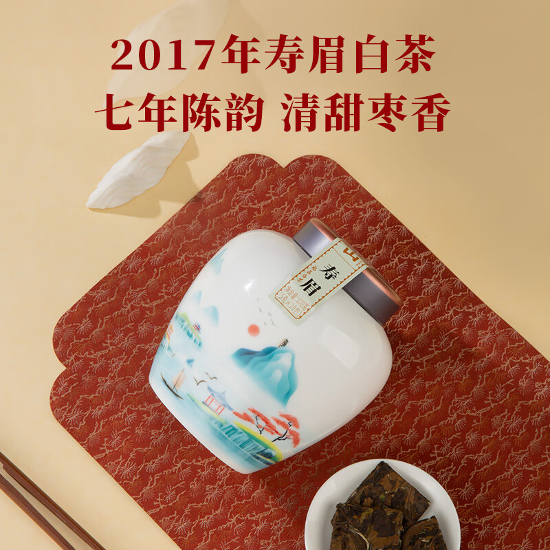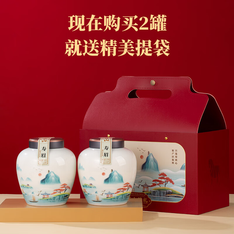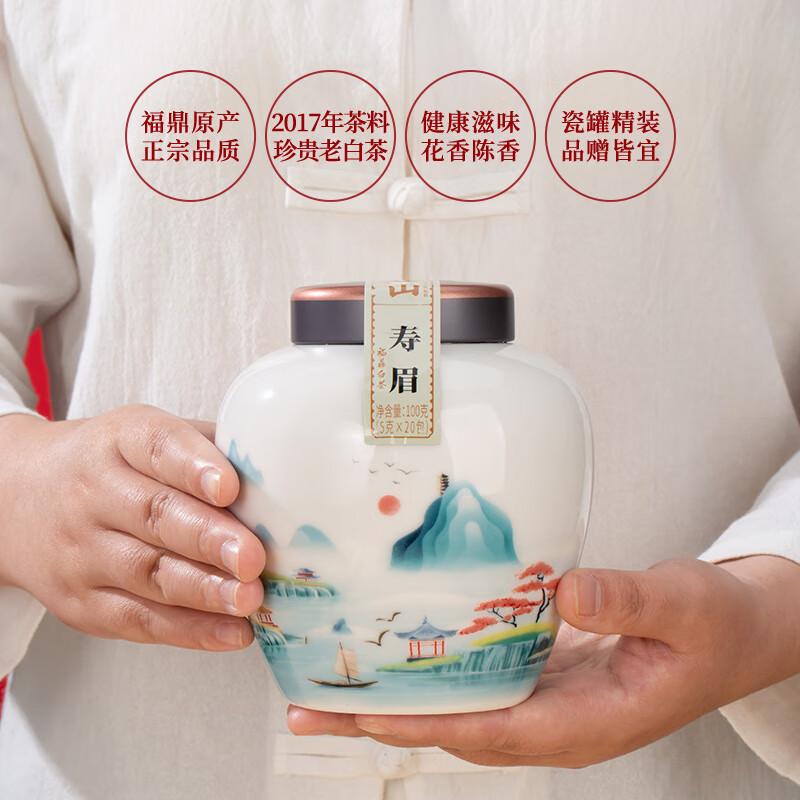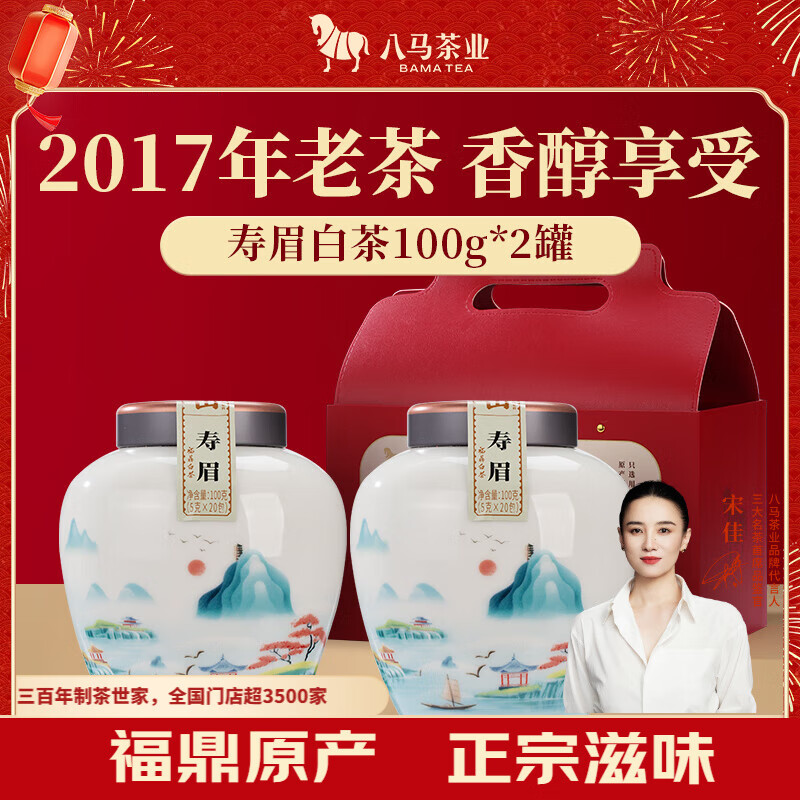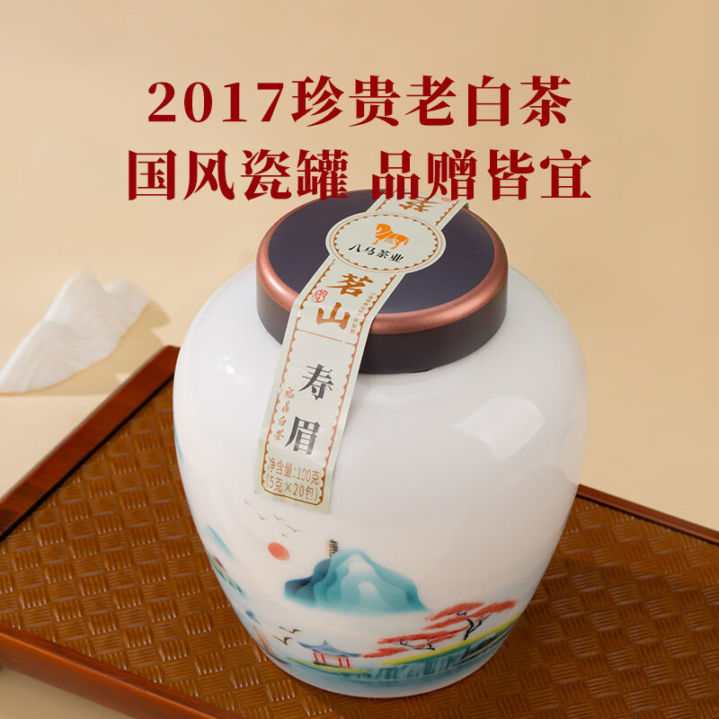 八马茶业 福鼎老白茶寿眉200g2017年 双瓷罐礼盒装茶叶中秋节送礼