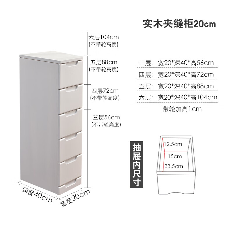 实木夹缝柜 //夹缝收纳柜实木斗柜窄柜子抽屉式床头柜缝隙边柜置 白色-20宽 3个