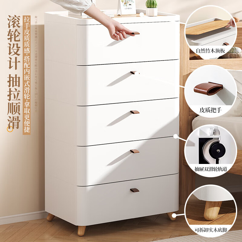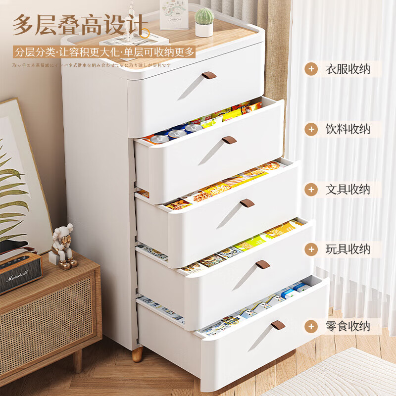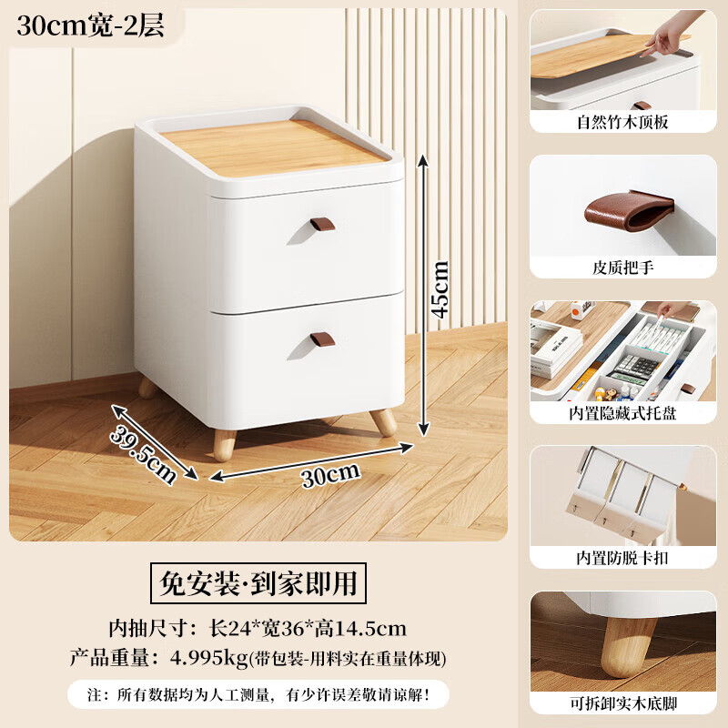 BABY VIEW抽屉式收纳柜床头衣服储物置物一体客厅卧室多层夹缝桌下简易杂物 【30cm宽-二层】 一体免安装·配实木脚
