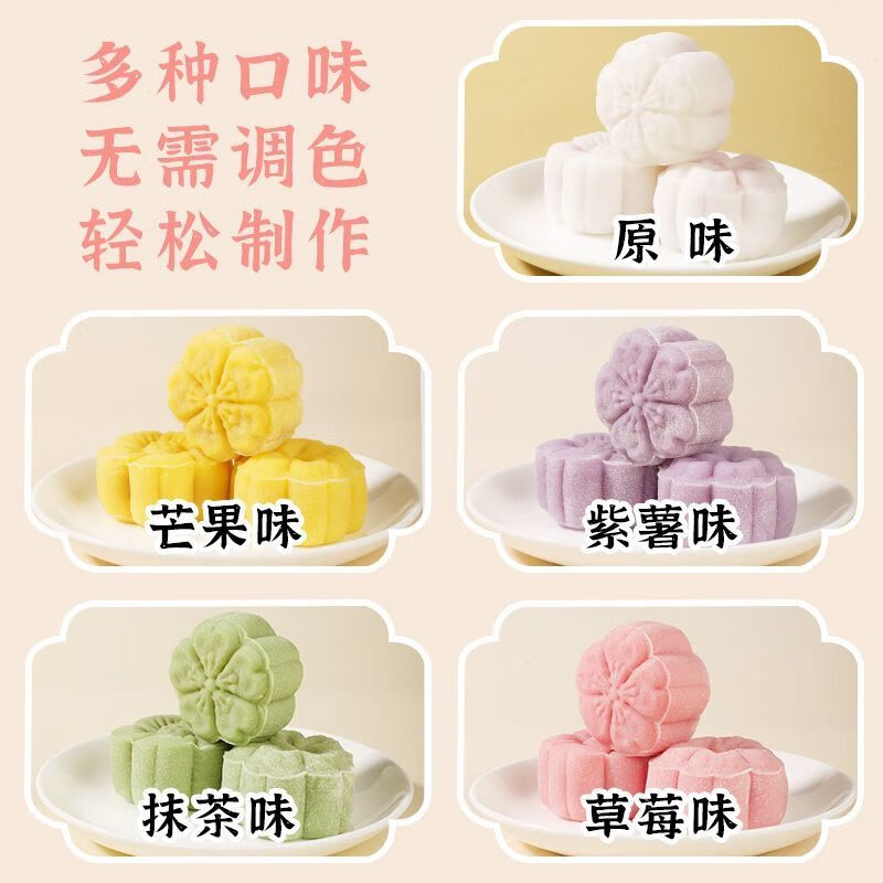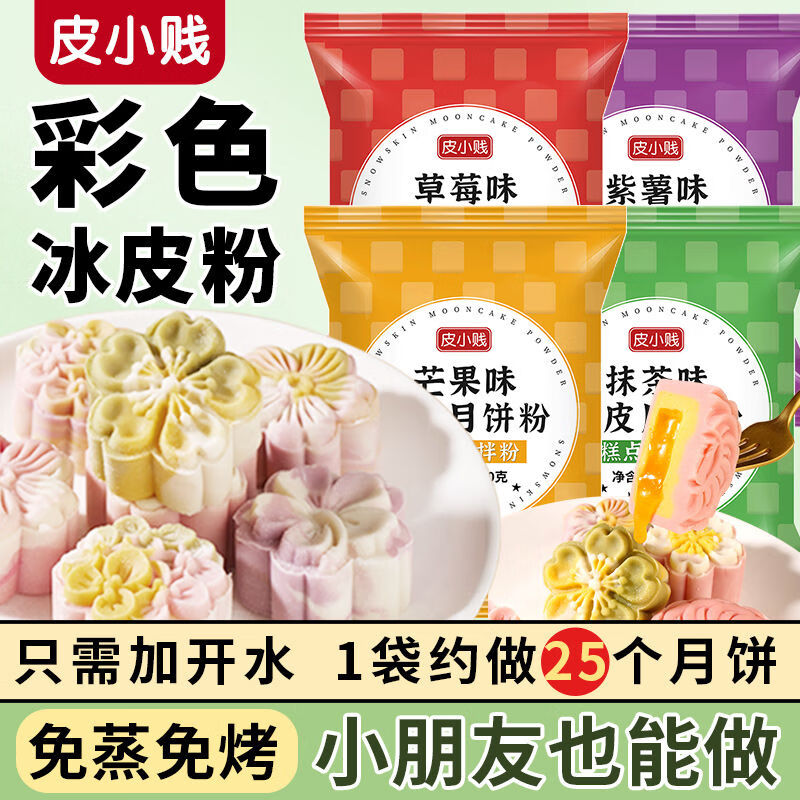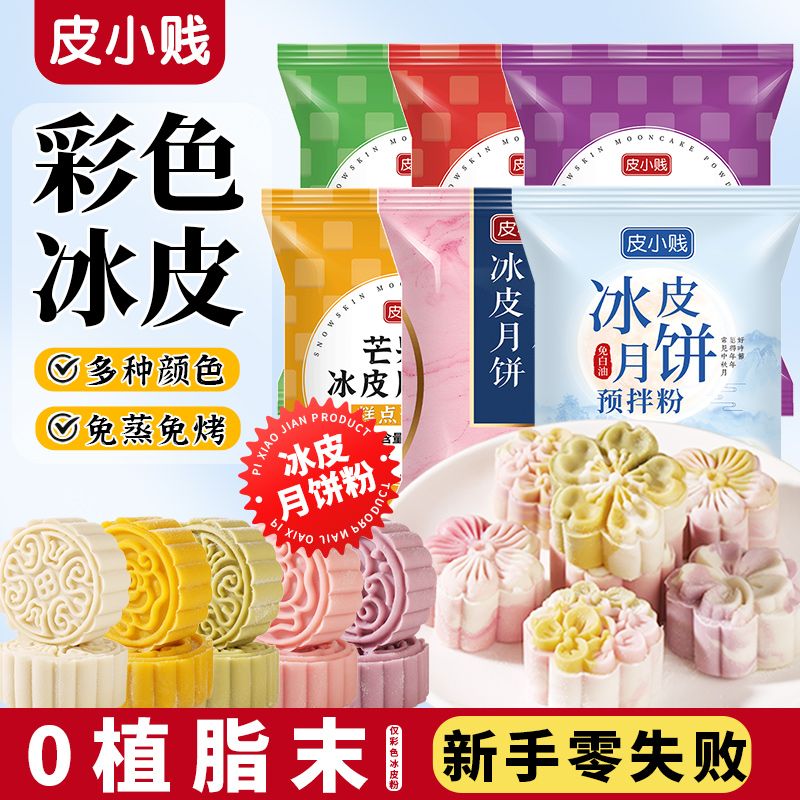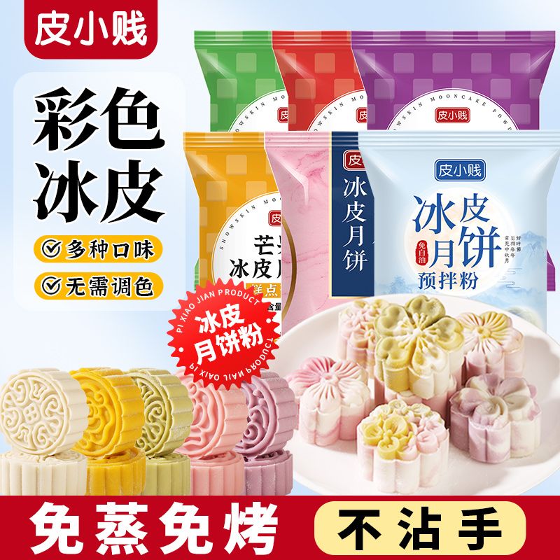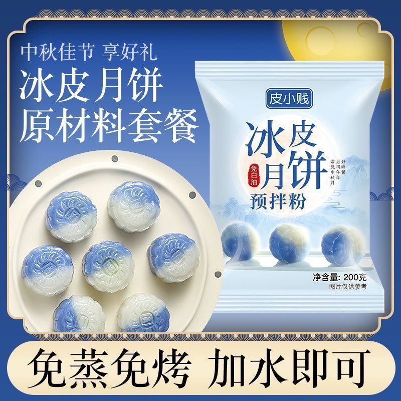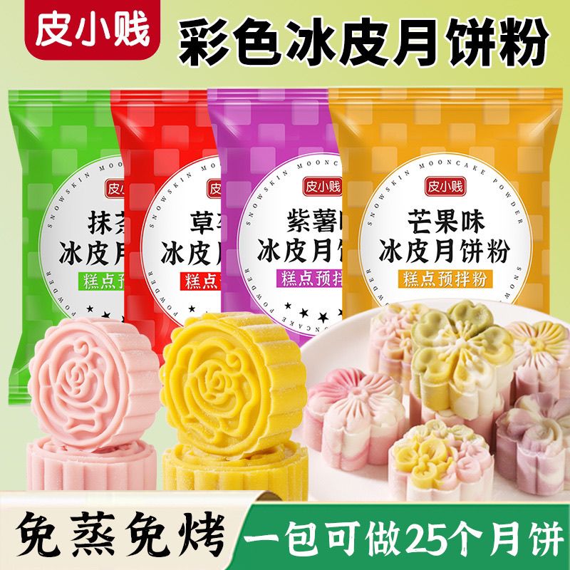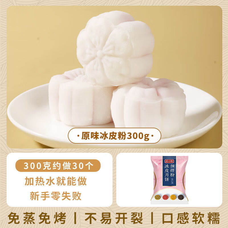 皮小贱彩色冰皮月饼专用粉冰皮预拌粉免蒸烤商用自制抹茶冰皮月饼材料 【原味】冰皮粉250克(做25个)