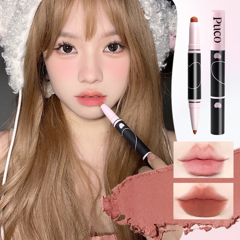 PUCO缪斯系列唇膏唇线笔双头雾面口红笔哑光唇膏笔唇线 01 离不开 乌龙棕咖+奶油杏茶