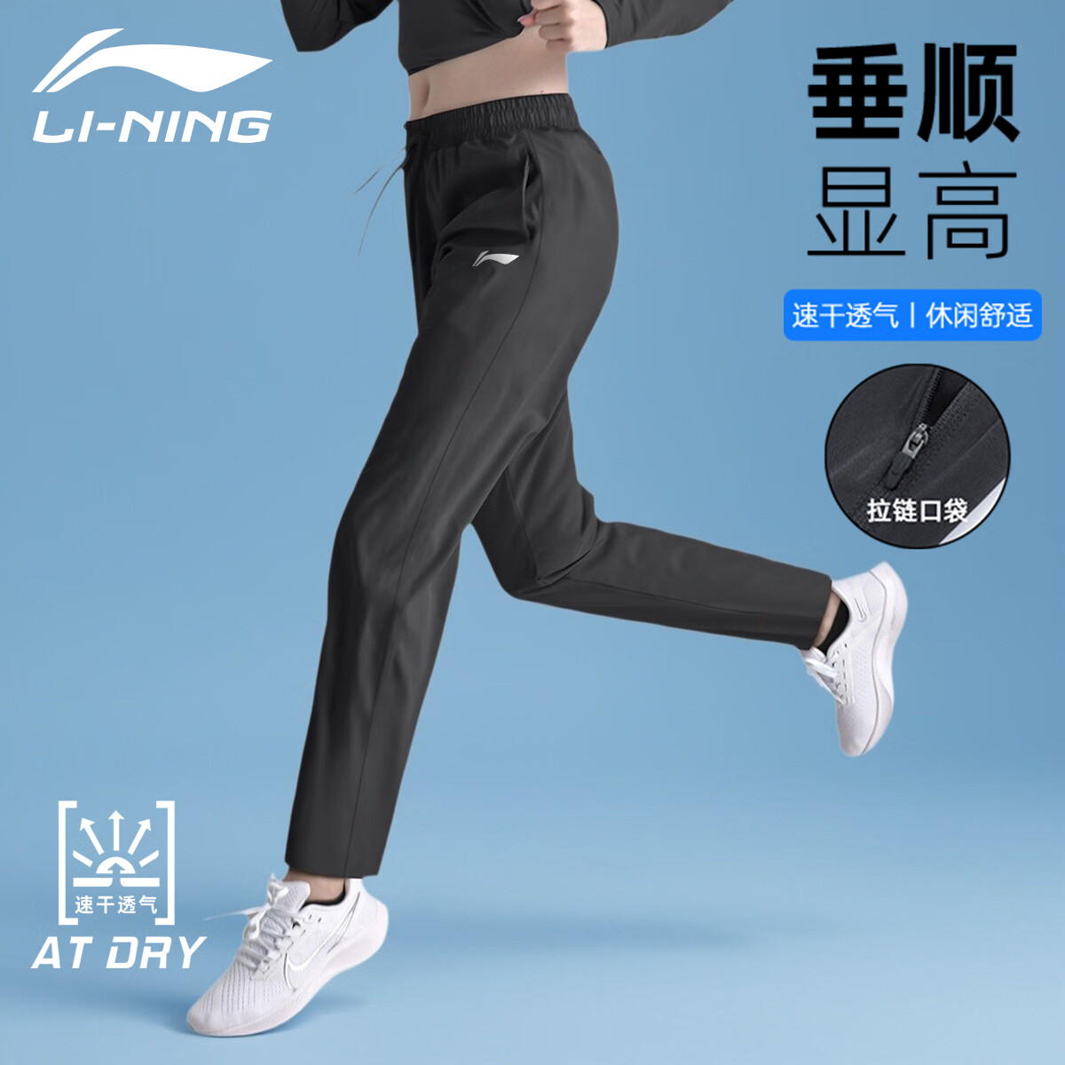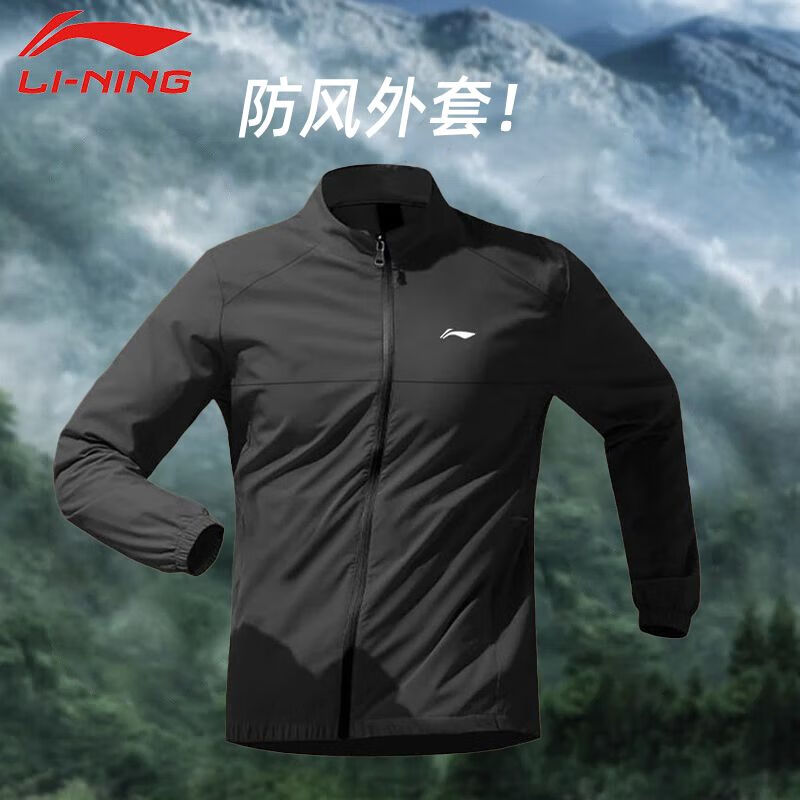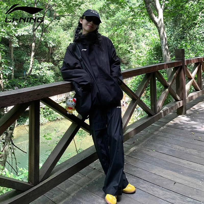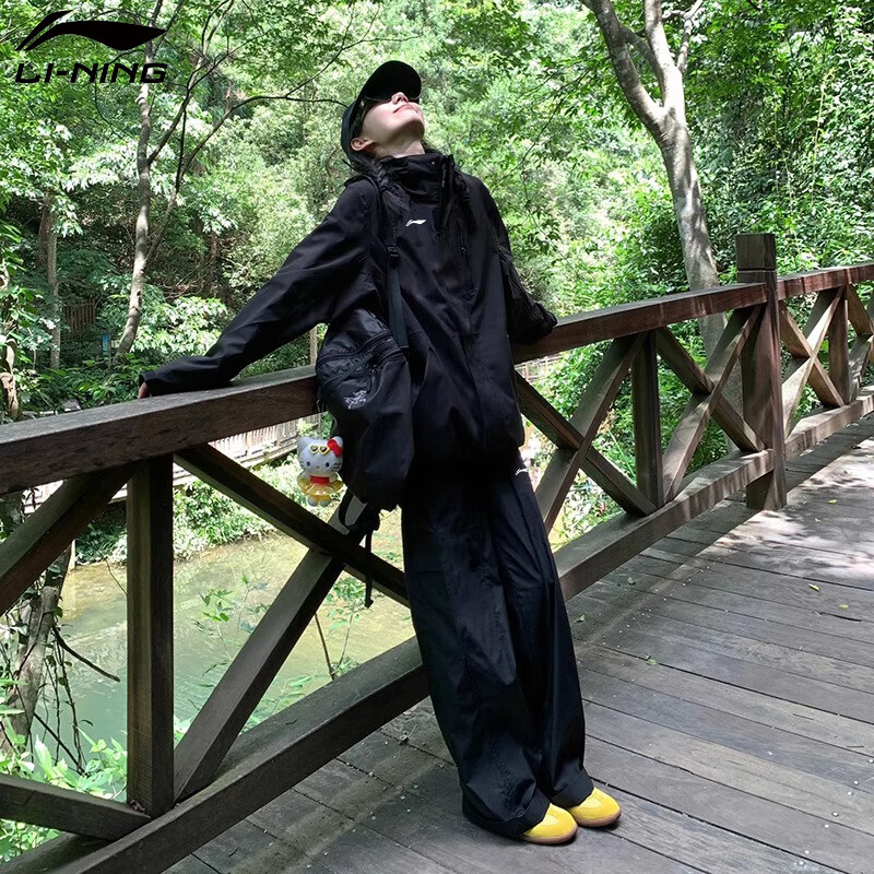 李宁运动套装女春秋季新款防风登山户外冲锋夹克速干长裤运动服两件套 黑色立领风衣+速干直筒裤 M