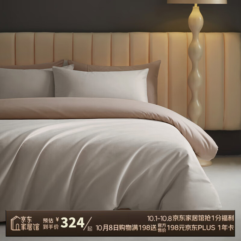 MIDO HOUSE【超柔纯色】铭都床上四件套100支100%全棉纯棉四季通用床单被套 【100支新疆长绒棉-磨毛常规】杏奶米配棕雾咖 1.2m-三件套 床单款 -被套150*200