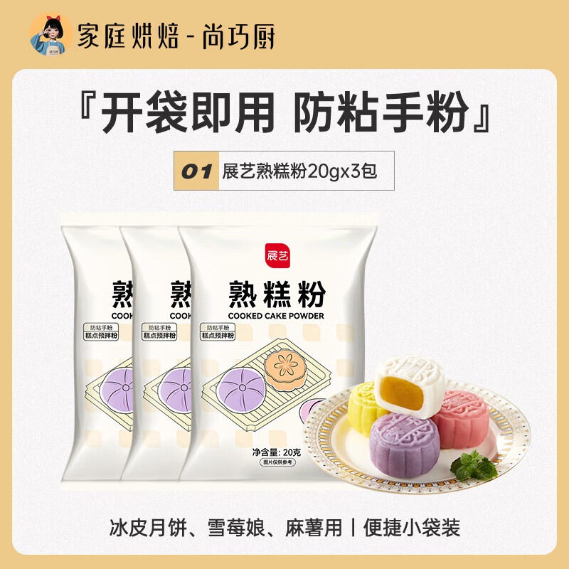展艺冰皮月饼预拌粉月饼材料全套冰皮月饼专用粉商用团建家用diy自制 【冰皮月饼】熟糕粉20g*3袋