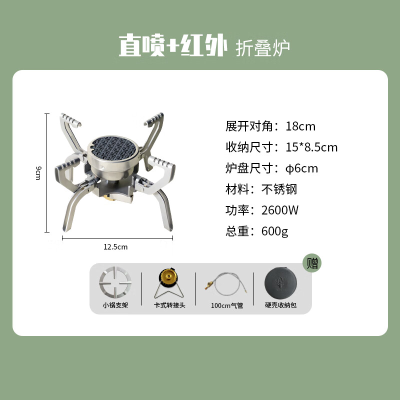 布比克折叠炉户外便携分体式炉具煮茶炉红外线防风飞碟炉头蜘蛛炉卡式炉 升级直喷红外折叠炉(含气管)