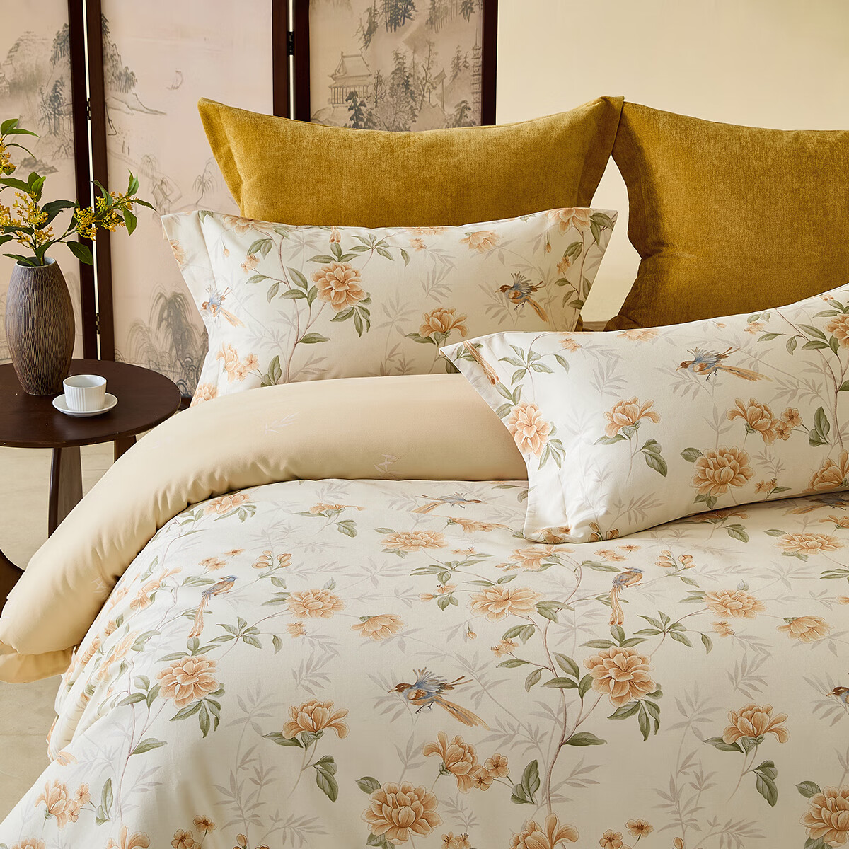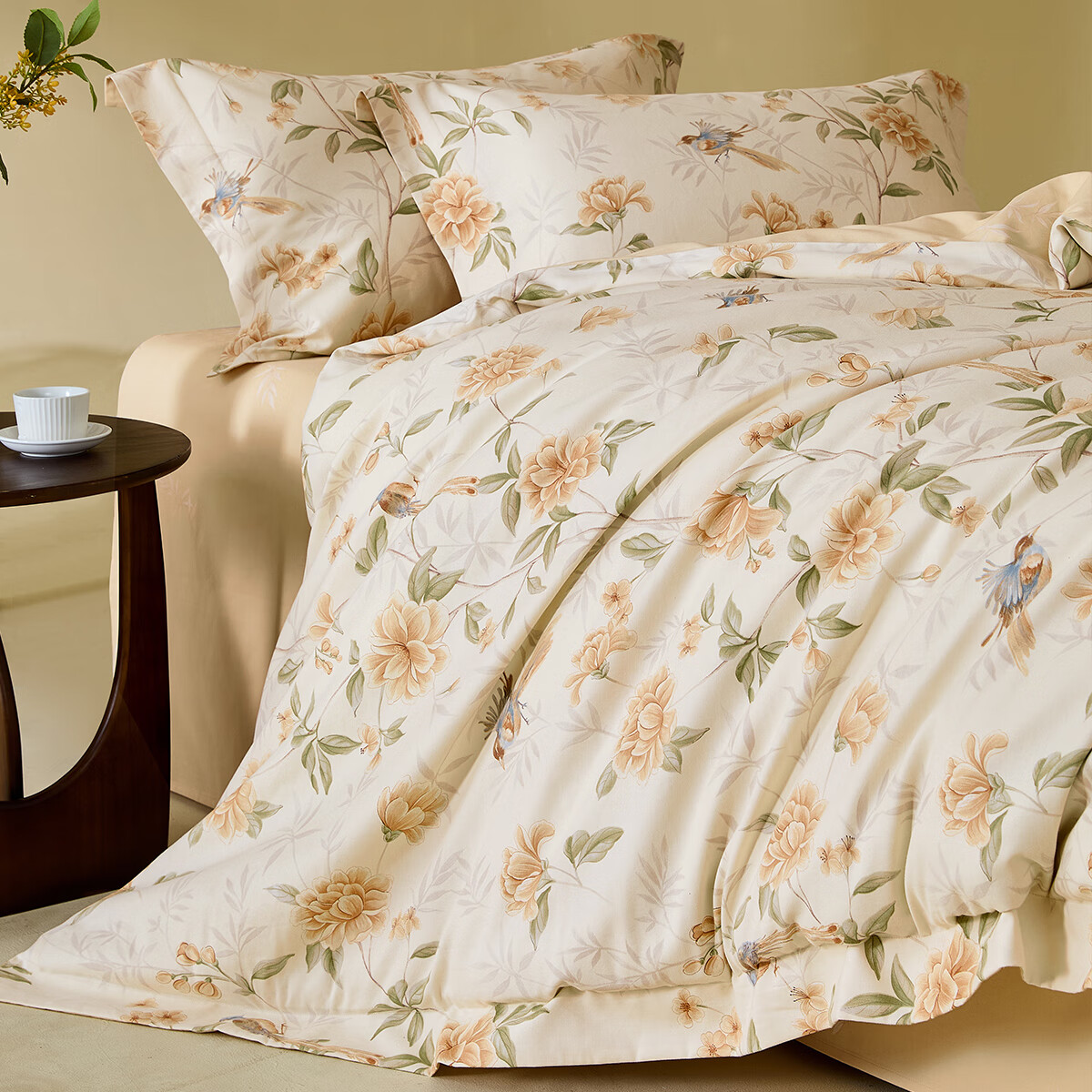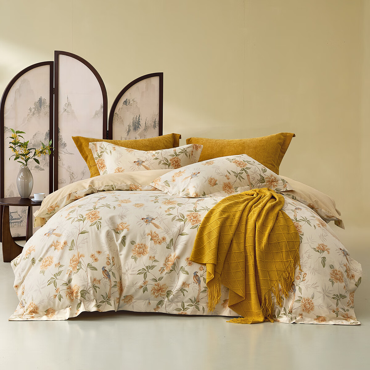 水星家纺磨毛四件套纯棉100%a类全棉床上冬季床单被套双人1.8m床乔枝
