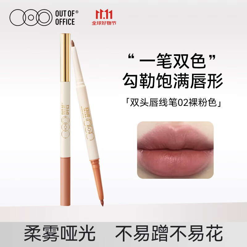 OUT-OF-OFFICE 双头唇线笔遮瑕OOO唇线笔丰唇塑型防水持久修容口红卧蚕笔02