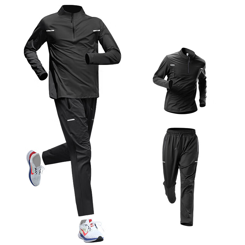 艾伦伯顿运动套装男士跑步训练健身服衣服田径速干衣秋季户外晨跑新款装备 黑色两件套【透气 速干 运动】 2XL 【160-180斤】