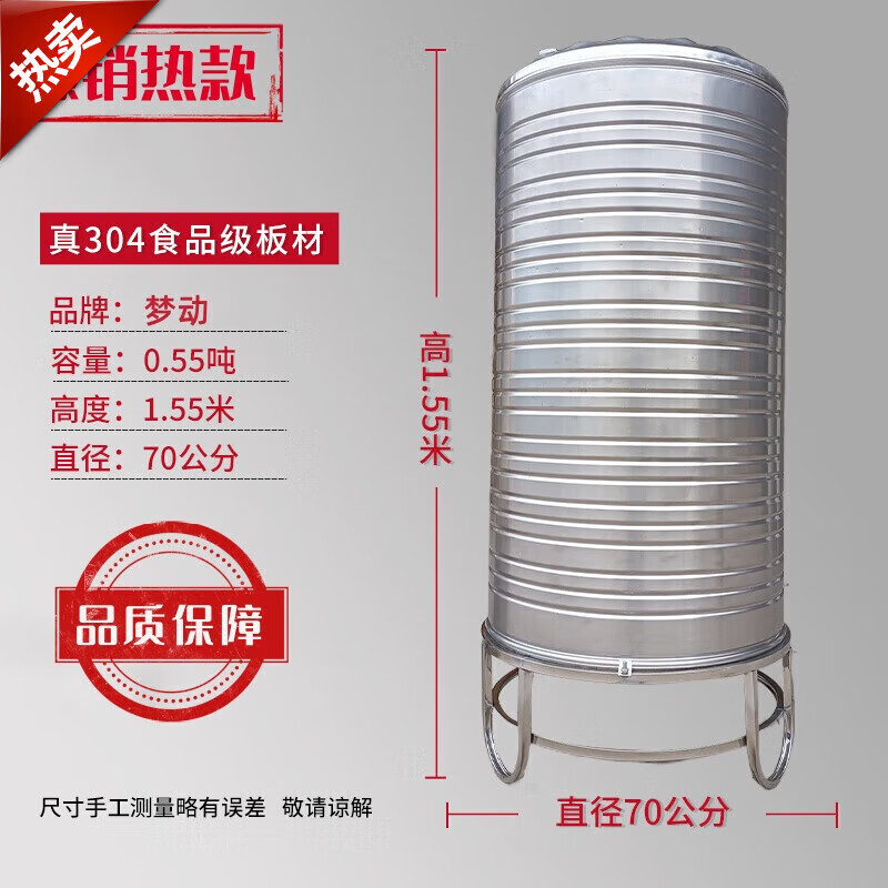 304不锈钢水箱家用立式加厚水塔食品级蓄水桶太阳能楼顶大储水罐 0.2吨