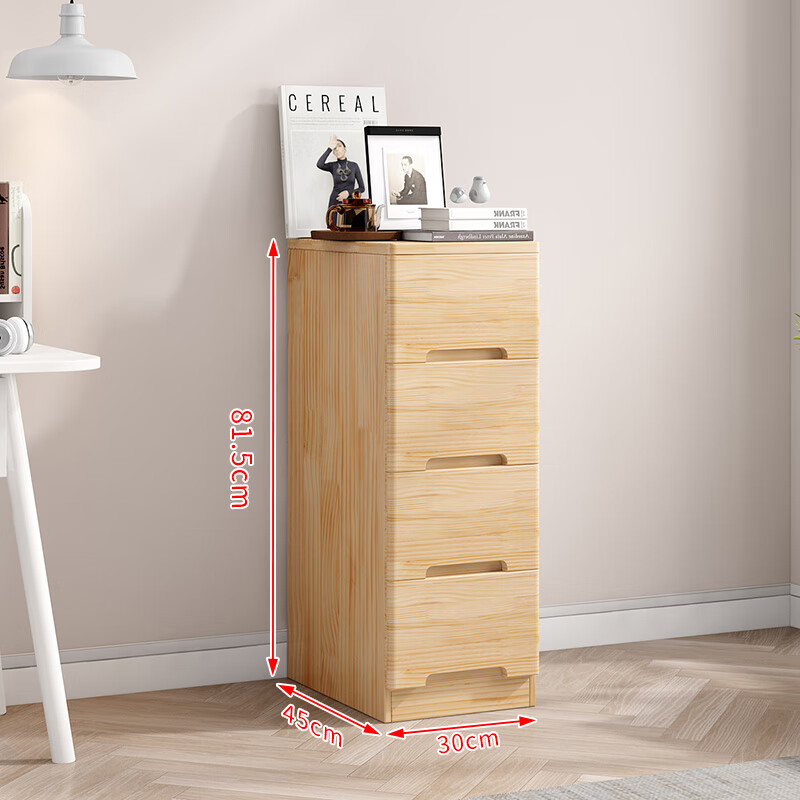 语森忆阅木森实木夹缝柜抽屉式窄松木斗柜缝隙收纳柜储物边柜床头柜柜子 K款-30cm四层实木无漆