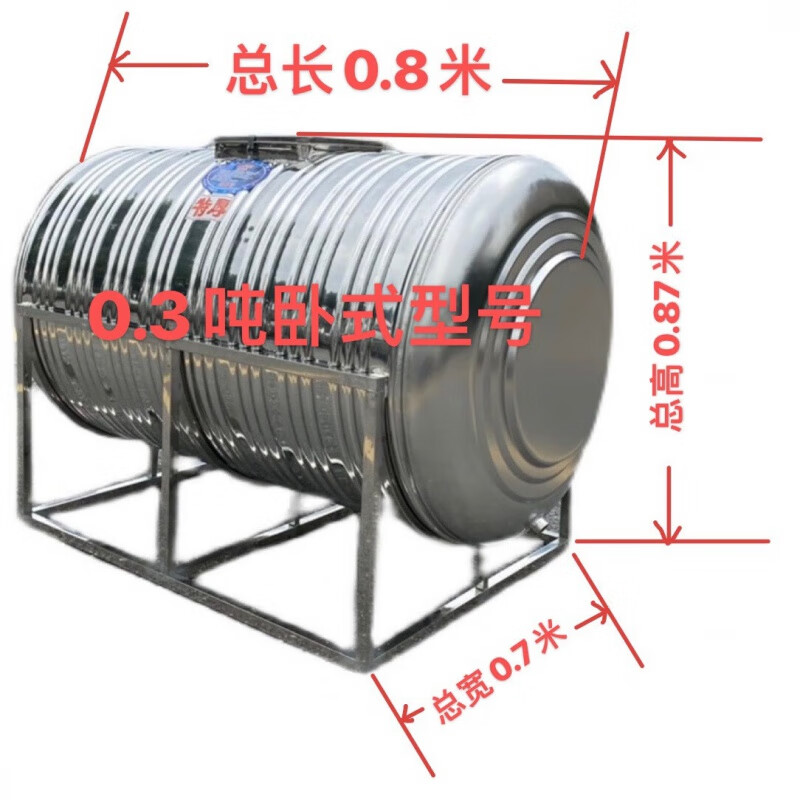 会会侠加厚304不锈钢水箱楼顶大容量立式卧式储水桶蓄水罐水池吨桶 0.3吨卧式型号 冷水箱送支架