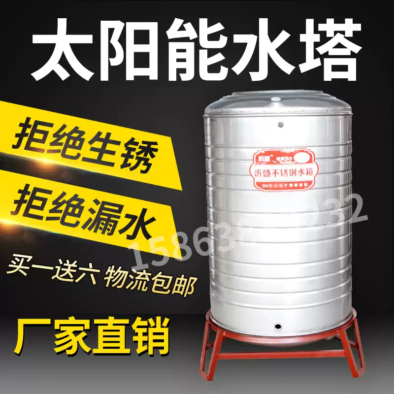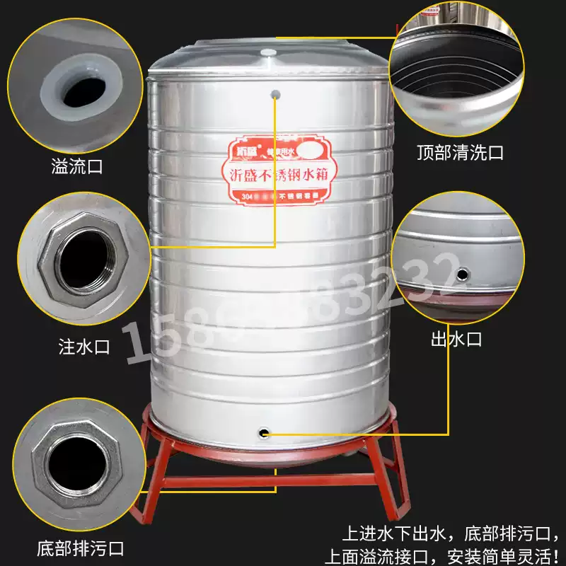 304不锈钢水塔储水罐水箱B加厚楼顶立式增压太阳能蓄水桶酒罐 0.6吨直径80高140支架25cm