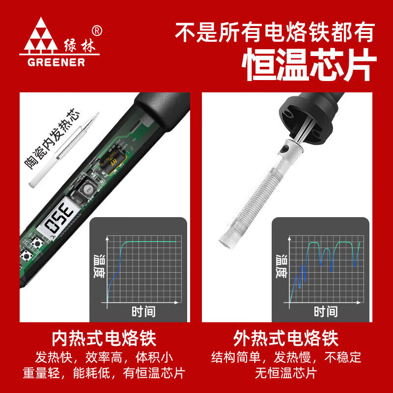 绿林(GREENER)电烙铁套装60W内热式数显可调温家用大功率焊锡焊枪电焊笔电洛铁