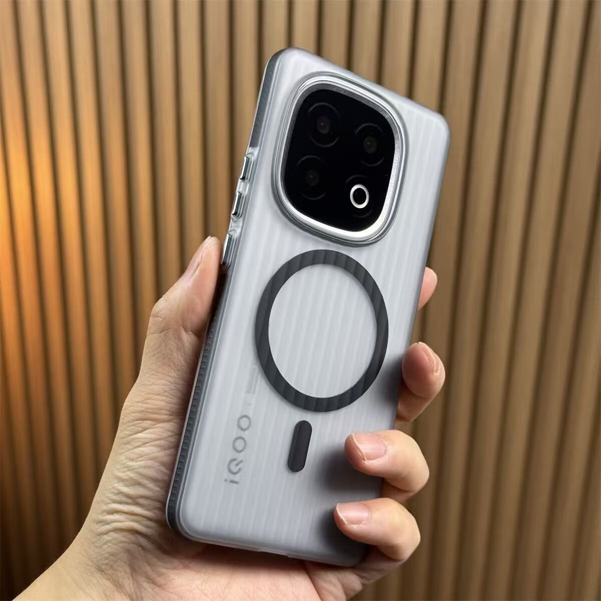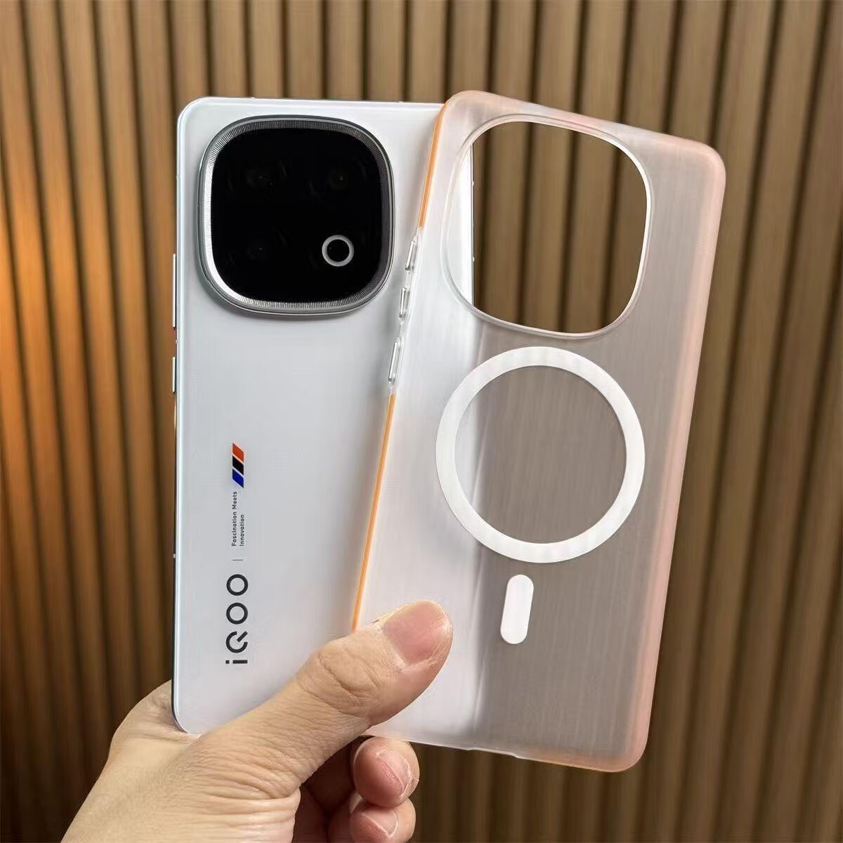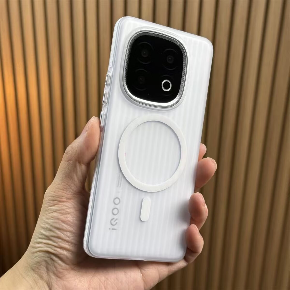 尹尚 冰雾磨砂侧边防滑条适用iQOO13手机壳新款iqoo13光栅瓦楞透明白硬壳大孔镜头简约男女保护壳 橙色防滑边 透白瓦楞纹【内置磁吸】 iQOO 13