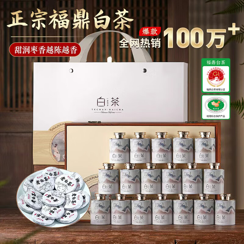 天洲溪 福鼎白茶 小茶饼干寿眉老白茶500g 中秋礼品茶叶礼盒送人领导