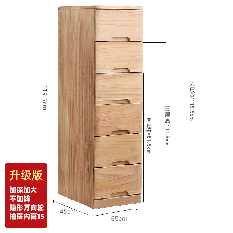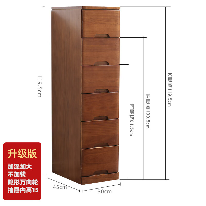尤亿实木夹缝柜多功能抽屉式收纳柜斗柜整理衣物柜床头客厅墙角储物柜 胡桃色50宽 6个