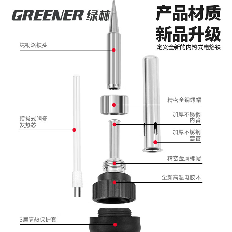 绿林(GREENER)电烙铁套装60W内热式数显可调温家用大功率焊锡焊枪电焊笔电洛铁
