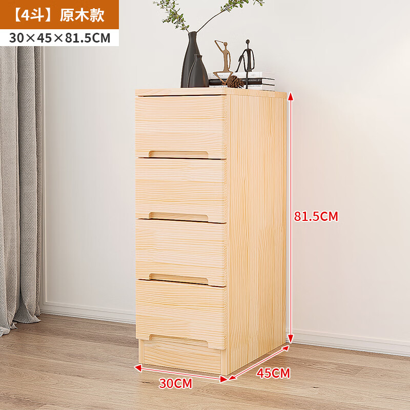 实木夹缝柜窄缝隙收纳柜抽屉式边柜柜子储物床头柜斗柜松木五斗柜 K款-四斗柜30cm 实木无漆