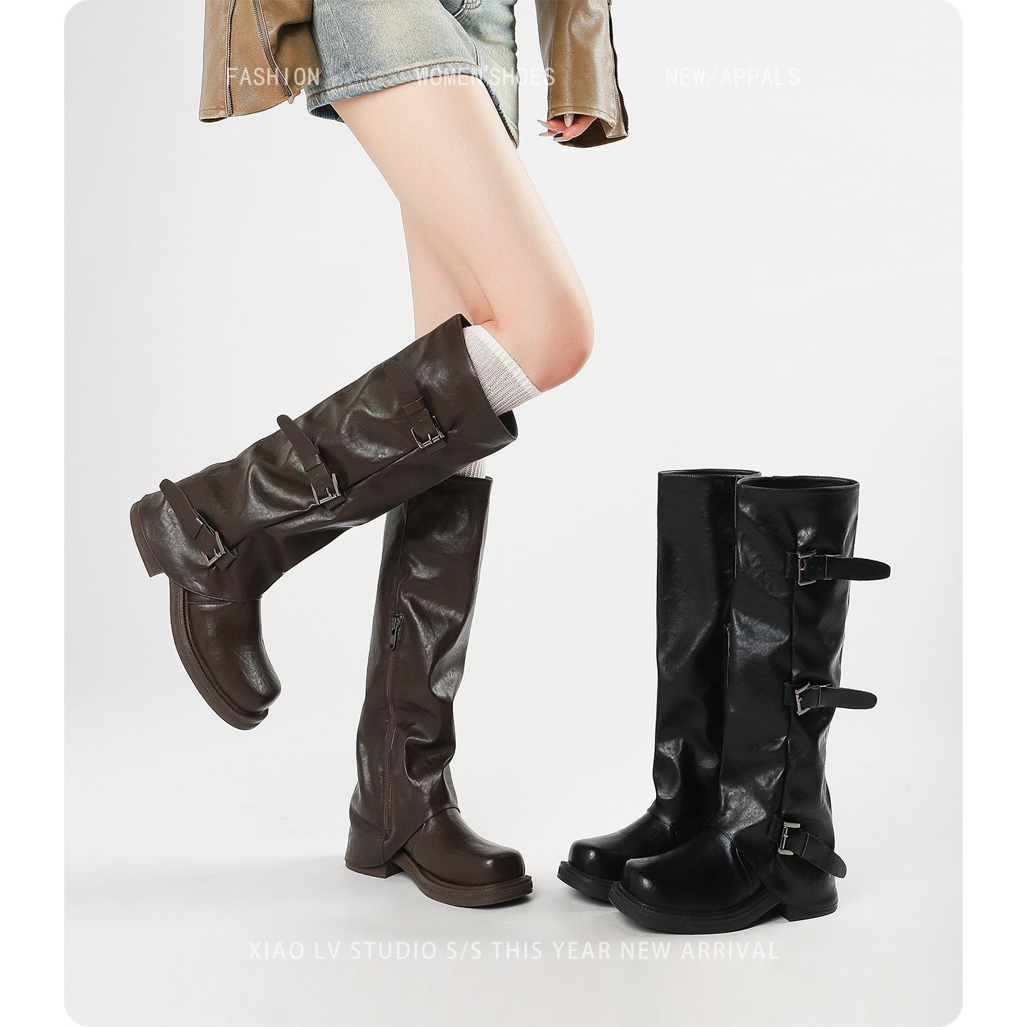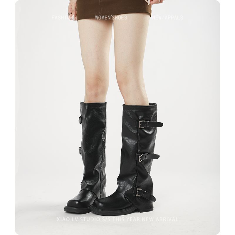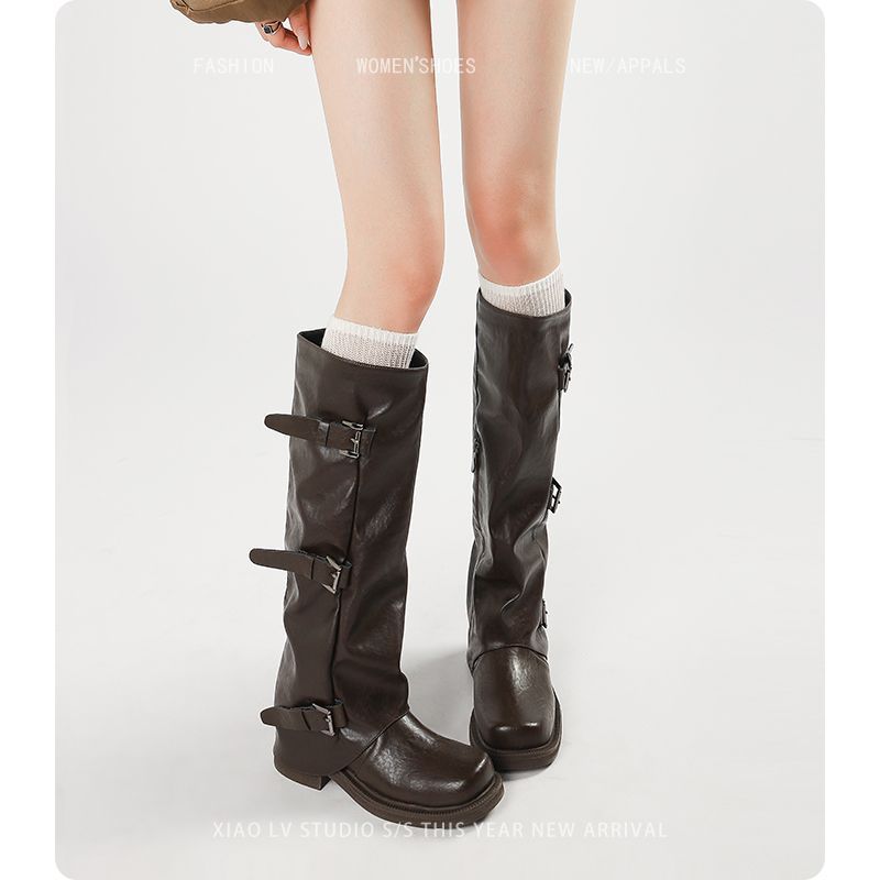 棕色长靴女大码秋冬厚底高筒骑士靴子胖mm长筒靴大筒围粗腿库管靴