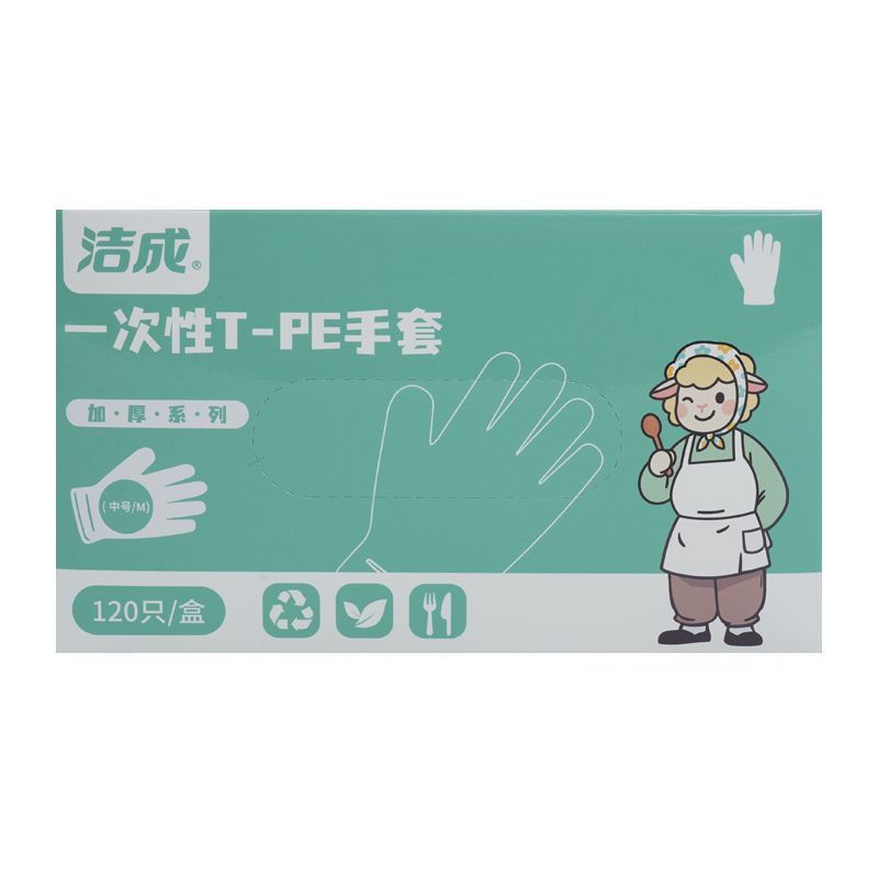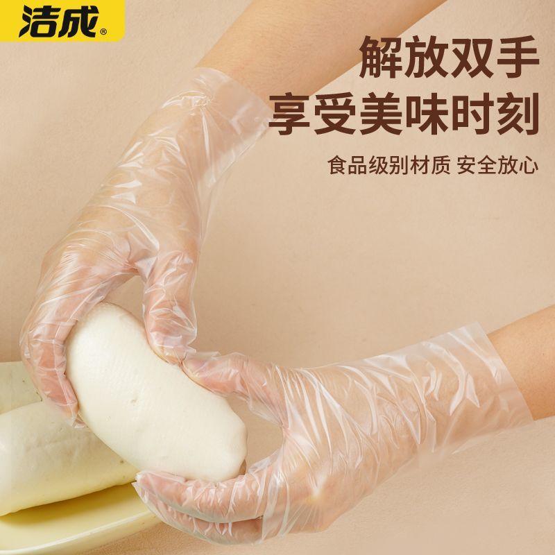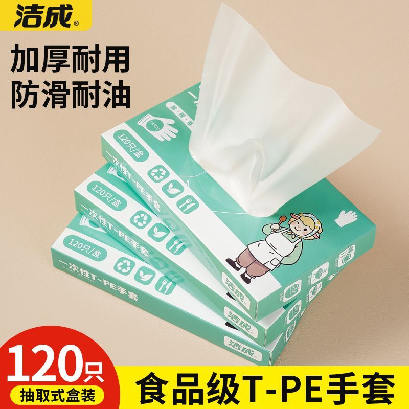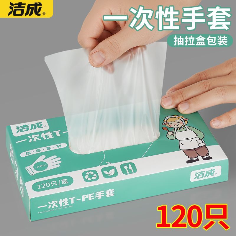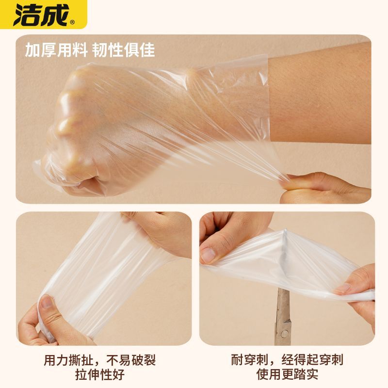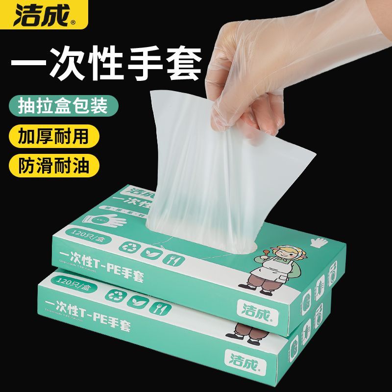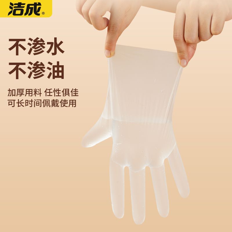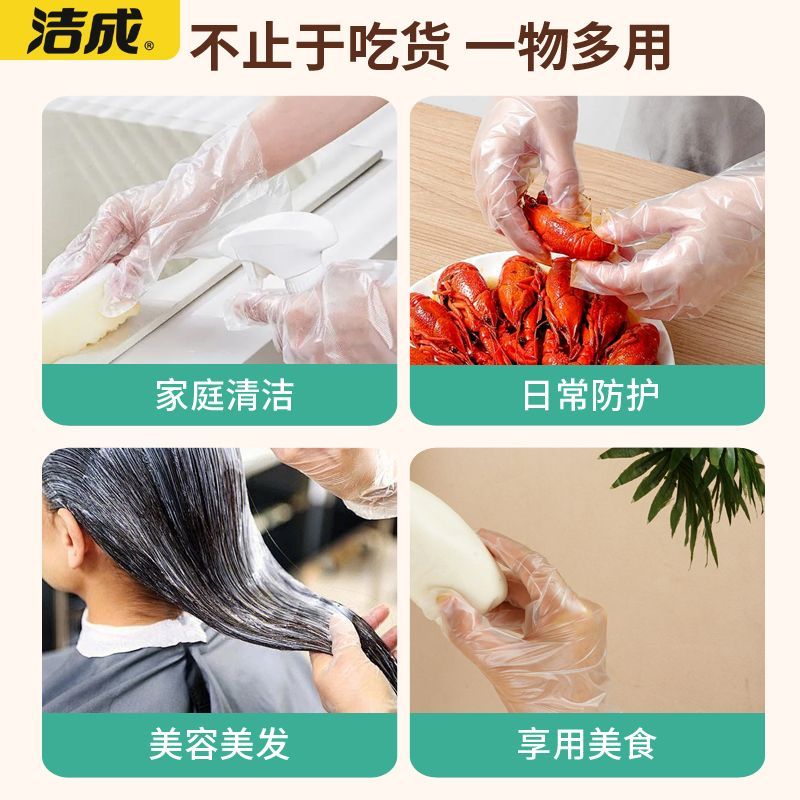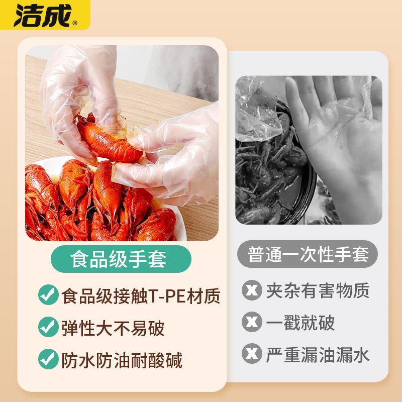 洁成食品级一次性手套加厚盒装小龙虾透明薄膜PE美容餐饮商用手套