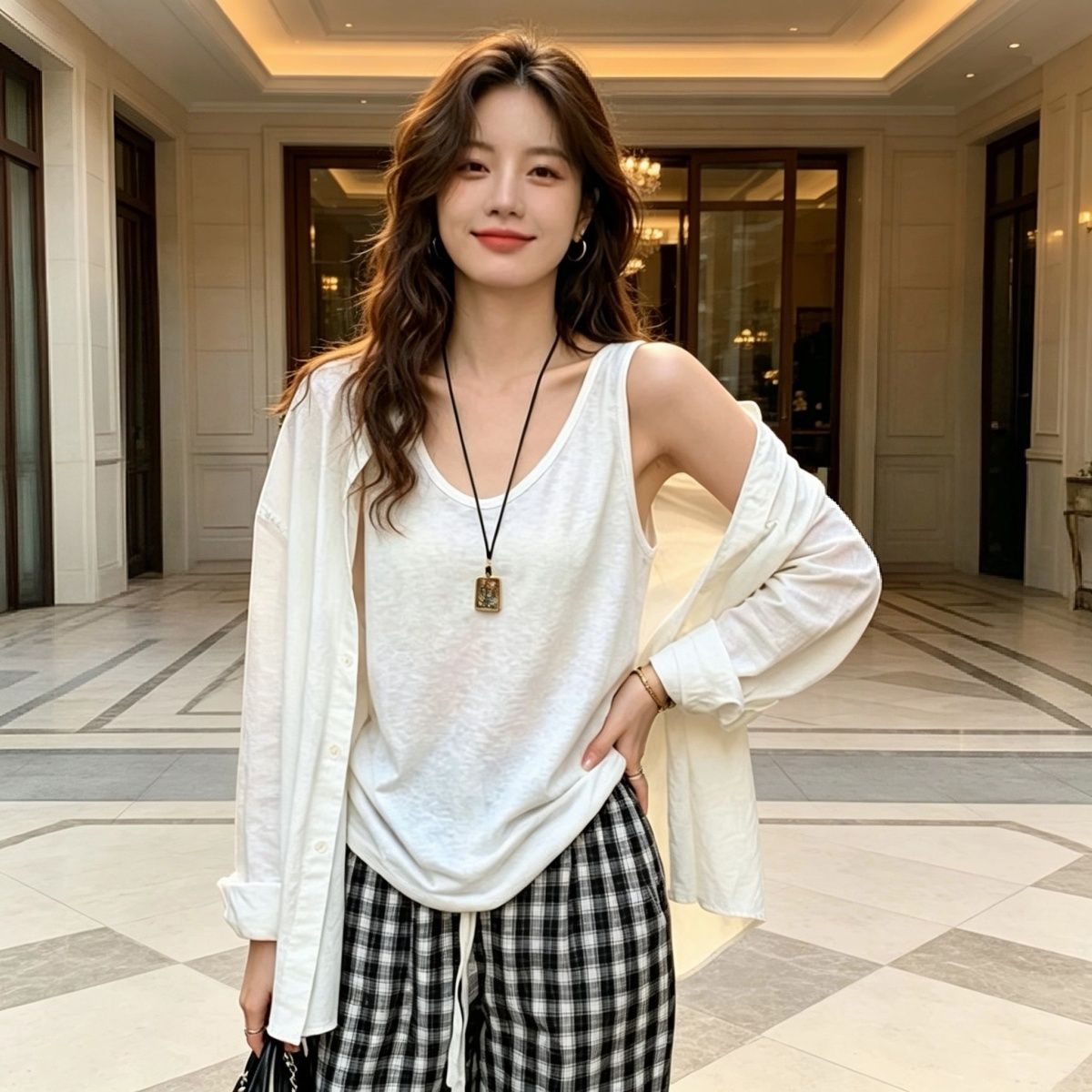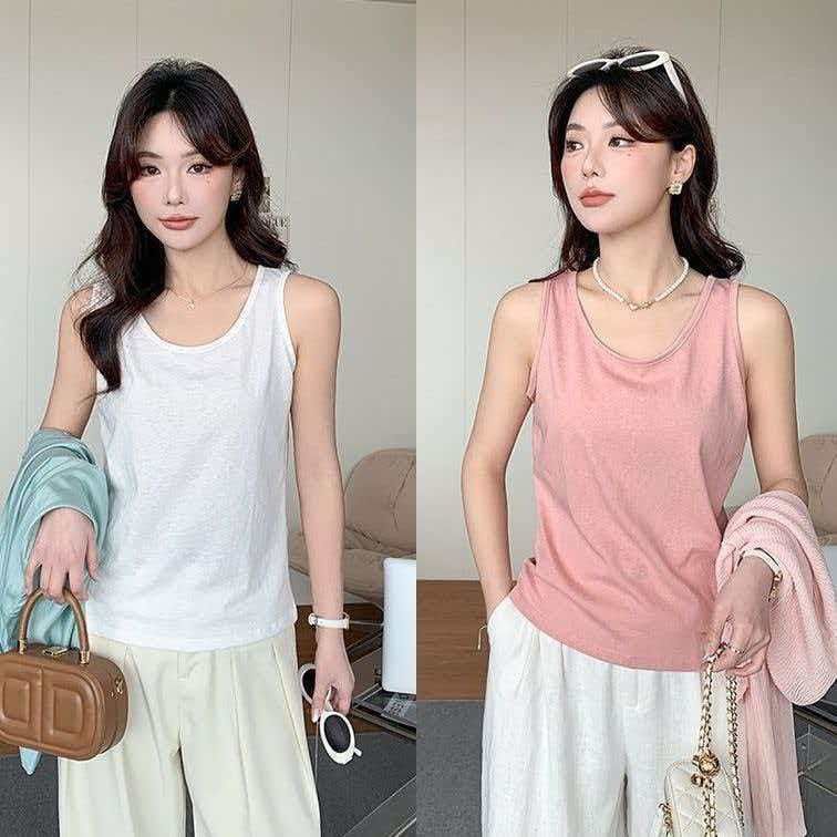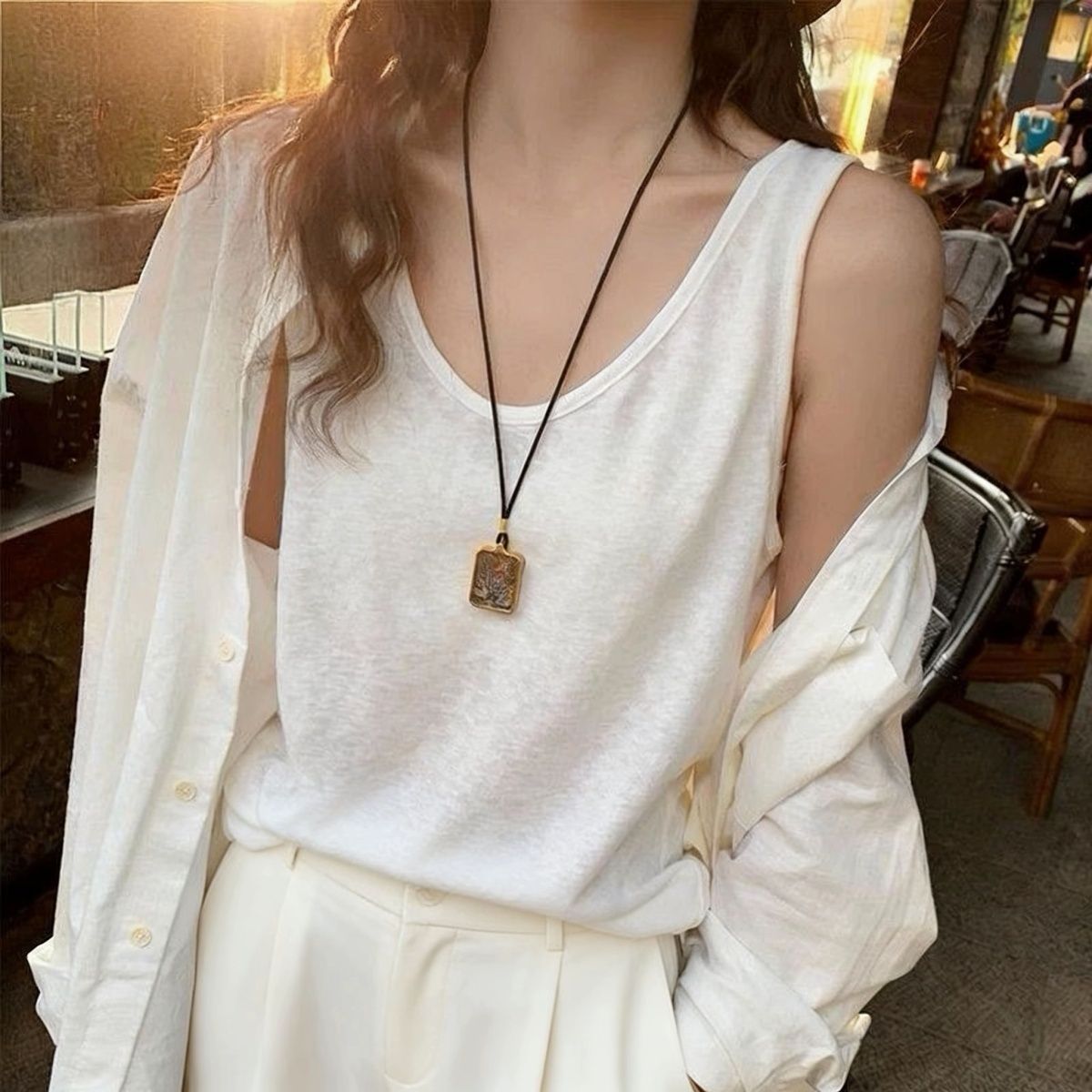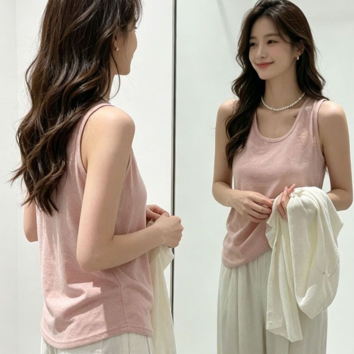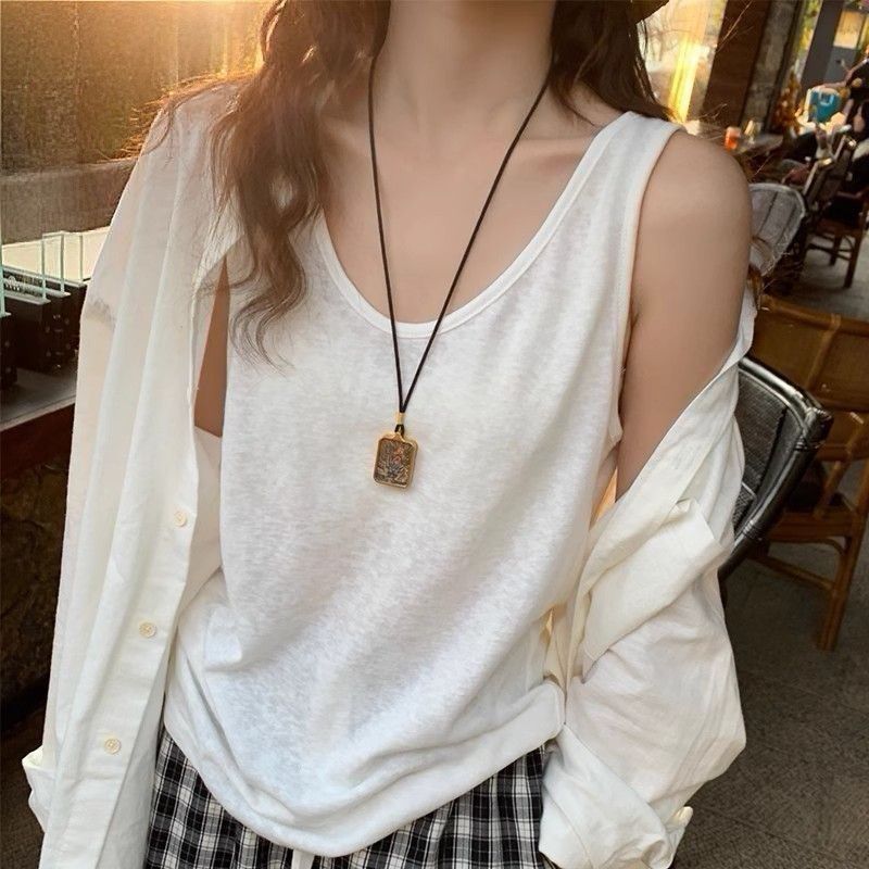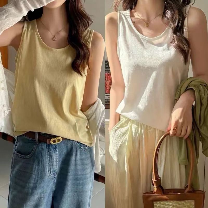 时尚爆款夏季宽松棉背心女内搭遮副乳打底慵懒风无袖吊带上衣潮
