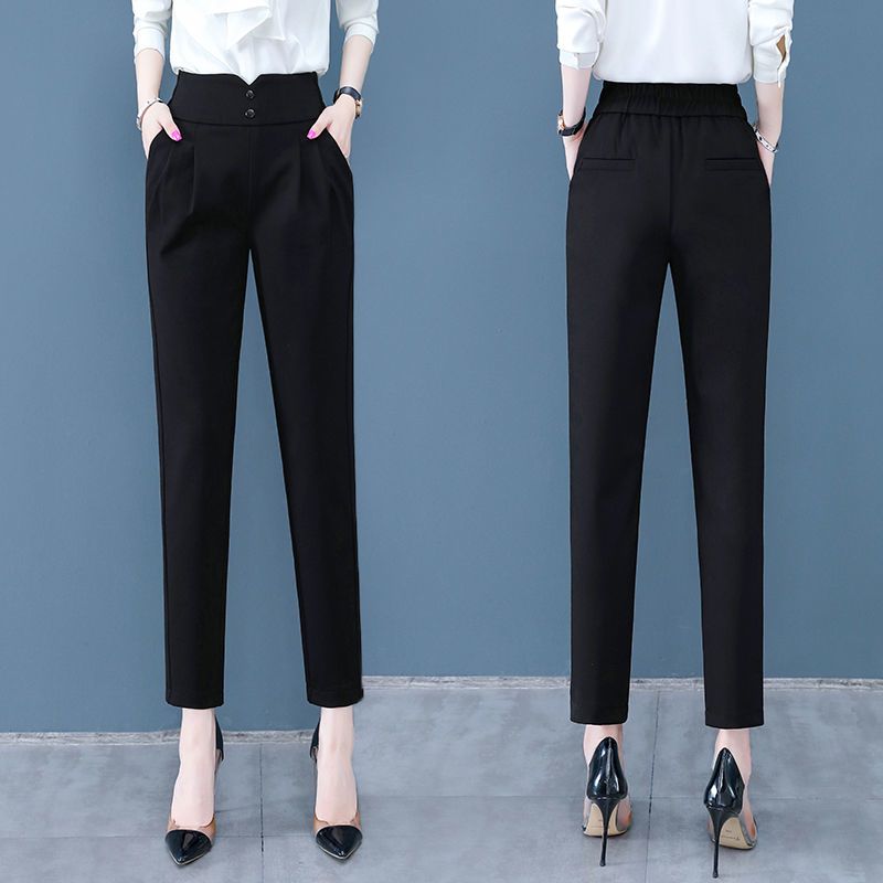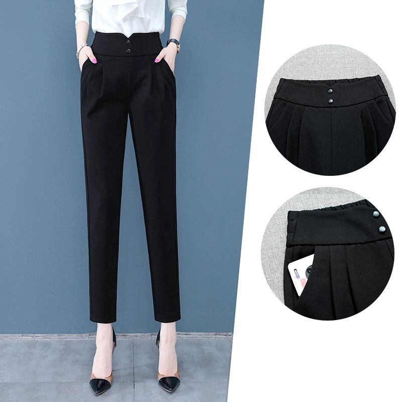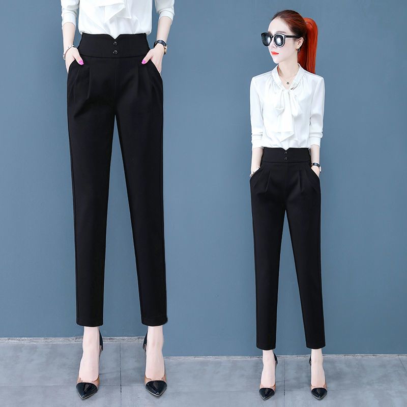西装裤女高腰显瘦秋冬季加绒加厚韩版职业垂感小脚哈伦裤女休闲裤