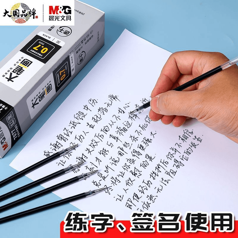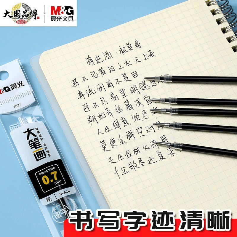 晨光中性笔芯0.7黑头大笔画水笔速干书法练字签字1.0粗办公