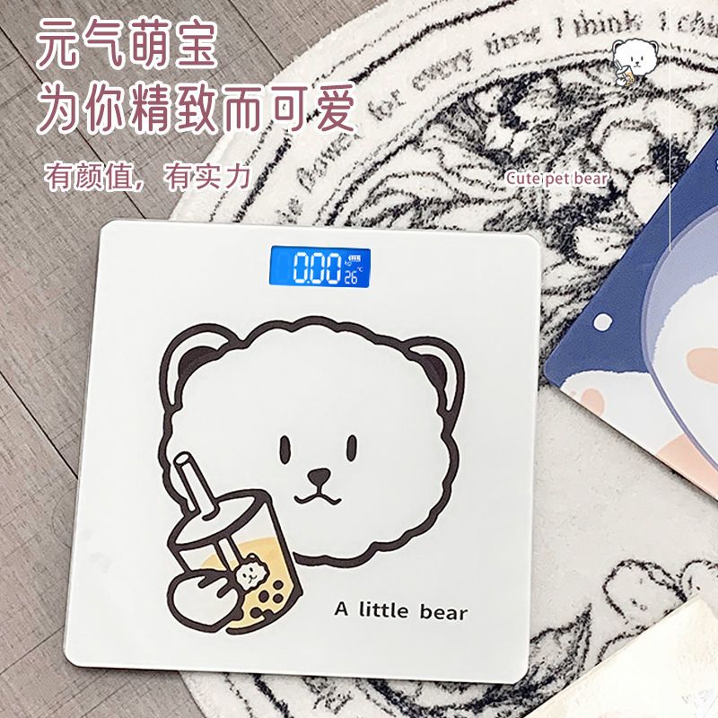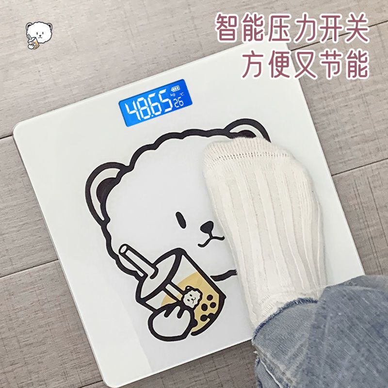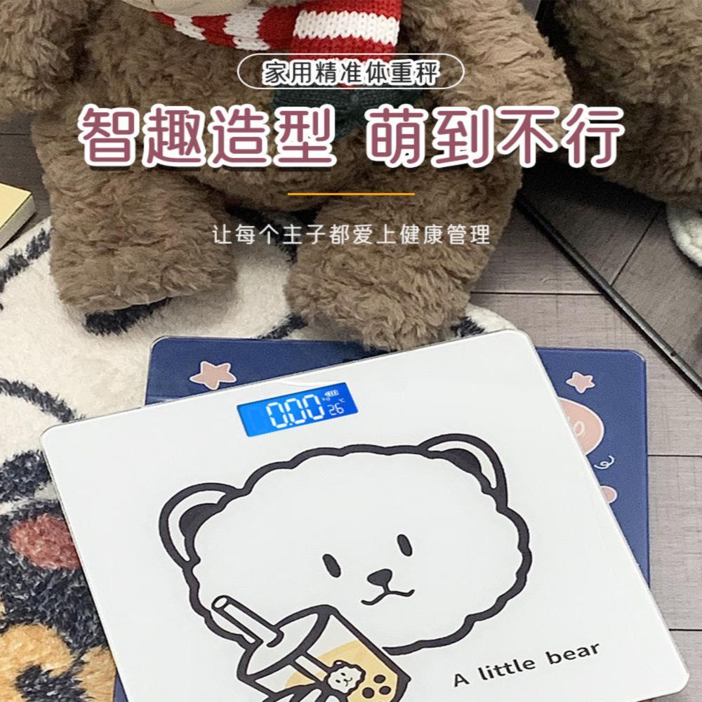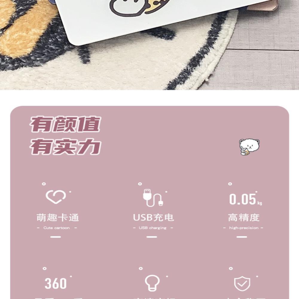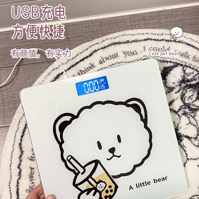 沐韩USB充电电子秤奶茶熊体重秤称重精准家用成人减肥宿舍人体秤