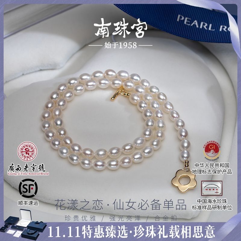 南珠宫[花漾]淡水珍珠项链合金花蕊扣小仙女必备生日礼物送女友
