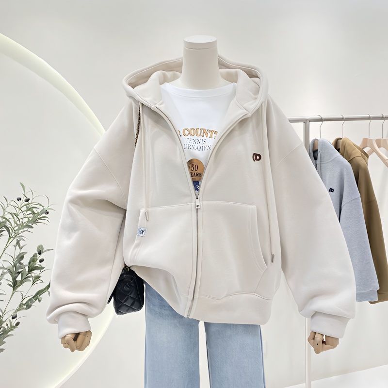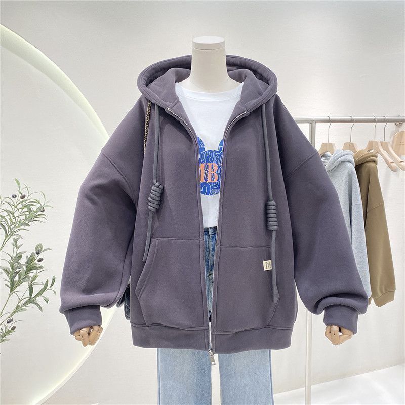 新款加绒连帽卫衣女宽松设计高级感小众显瘦百搭大码休闲闺蜜装潮
