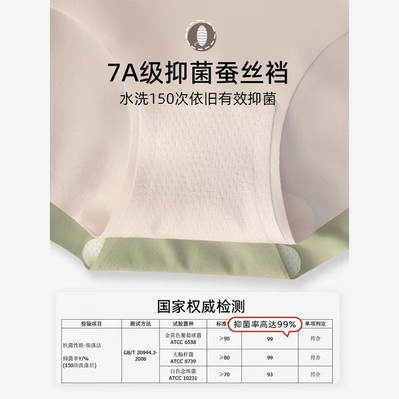 一条装无痕内裤女士中腰7A桑蚕丝抗菌档不夹臀运动瑜伽三角短裤头