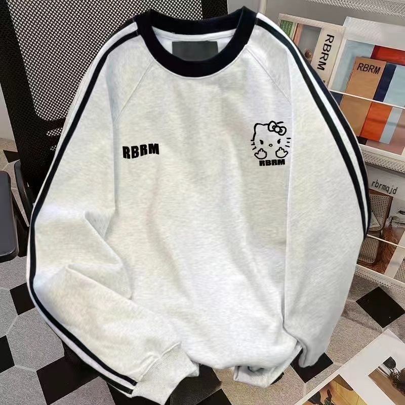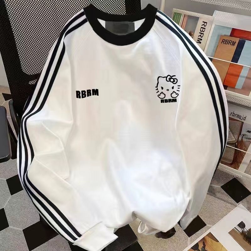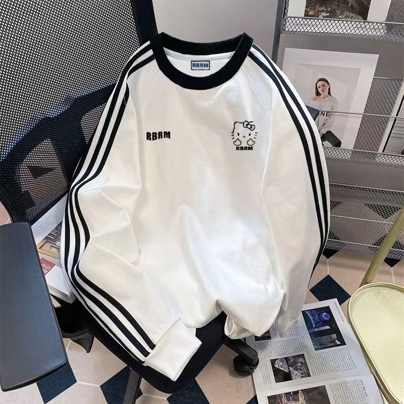 甜酷Hello Kitty三条杠卫衣女秋帅气百搭凯蒂猫宽松ins风圆领上衣