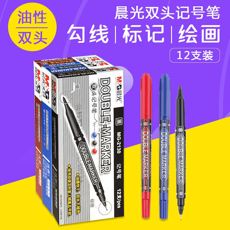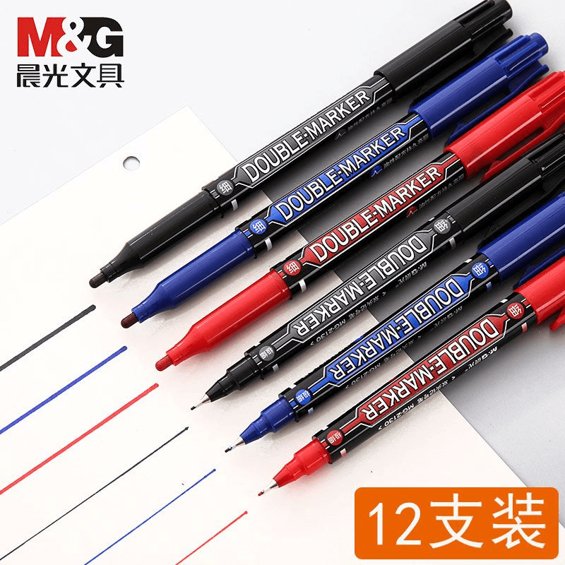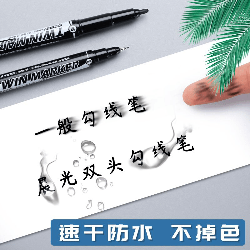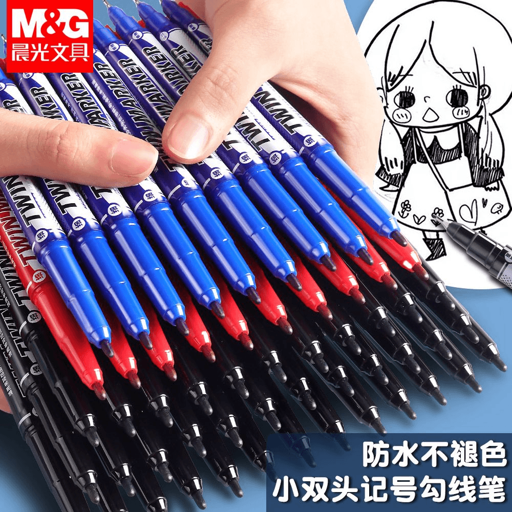 晨光双头记号笔批发小头细头粗小号油性不可擦黑色美术绘画勾线笔