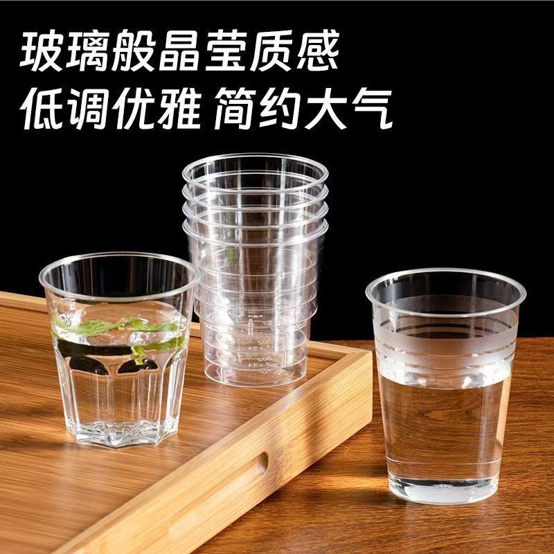 一次性塑杯航空杯加厚加硬防烫耐高温商用家用食品级透明一整箱