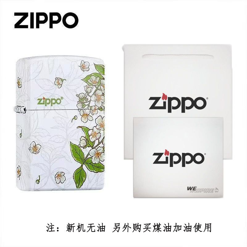 Zippo打火机防风煤油正品白哑漆彩印春绘的茉莉情人节送礼物收藏