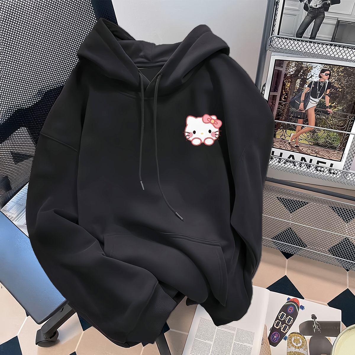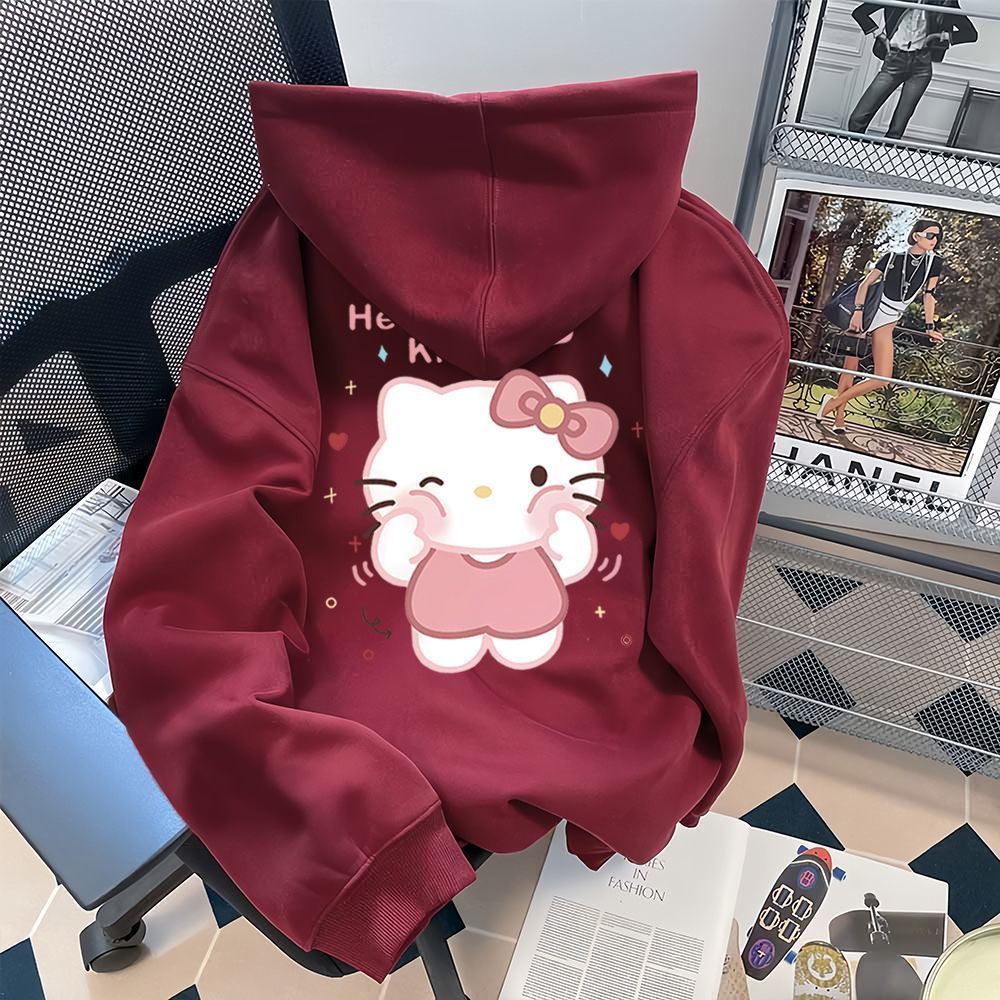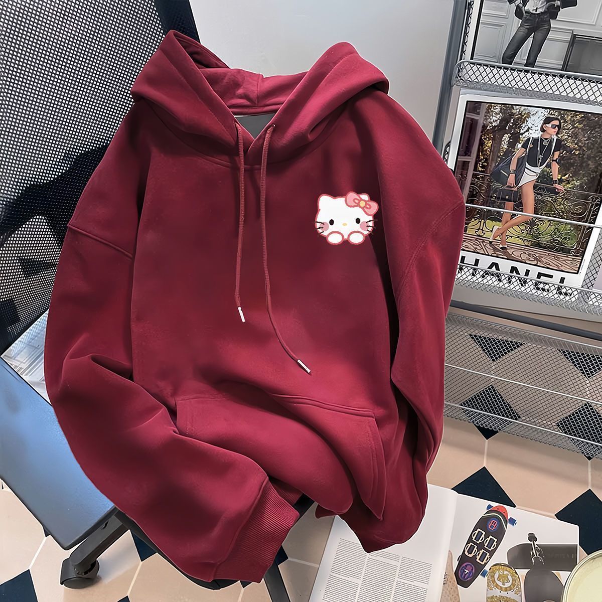 美式KT猫印花连帽卫衣女2025秋冬新款休闲宽松复古加绒外套ins潮